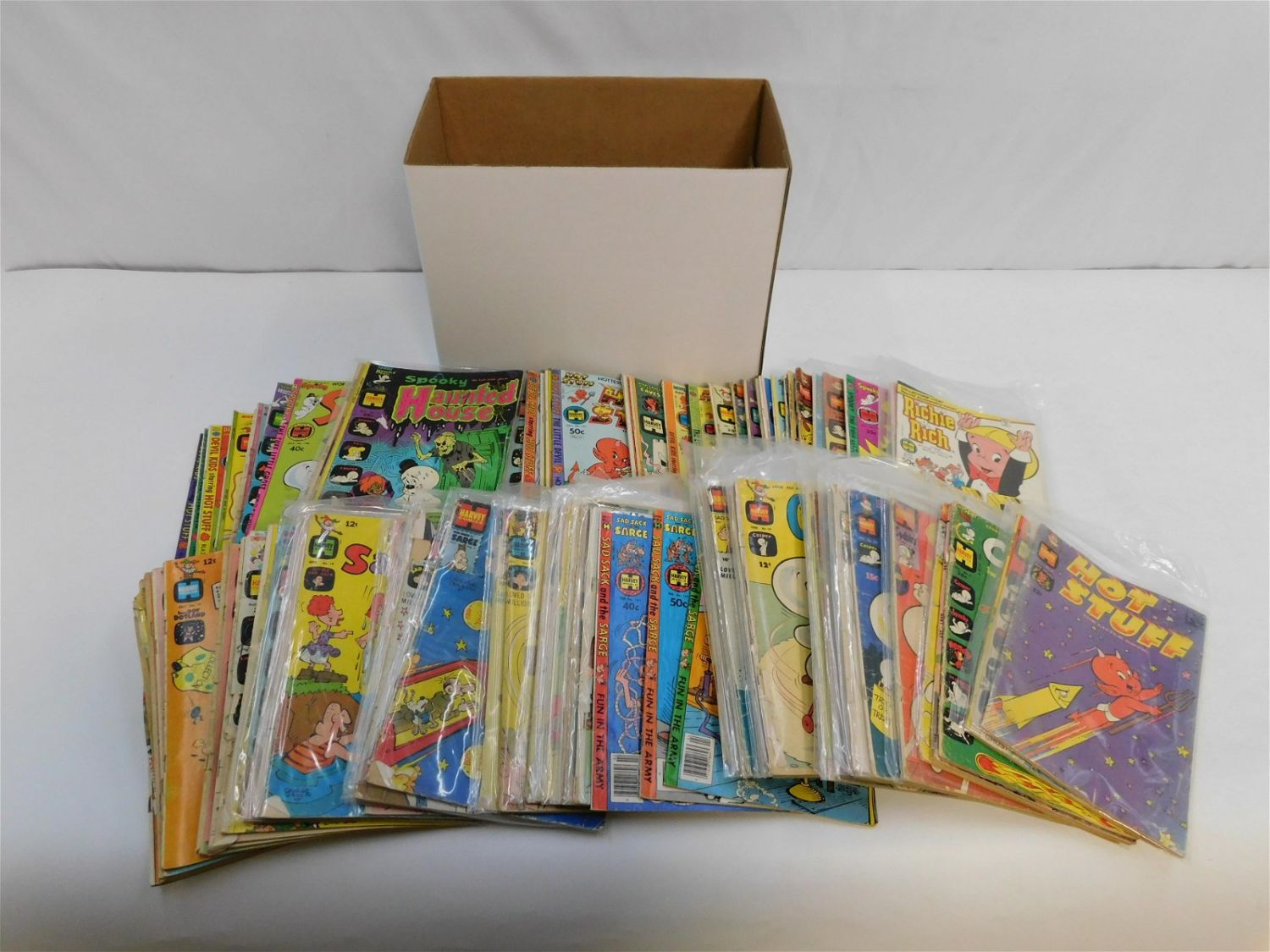 Short Box of Harvey Comics including Hot Stuff, Casper, Sad Sack, Spooky, Devil Kids and More. Most comics are lower grade. All invoices must be paid within 24 hours of the sale. All items are shipped USPS or UPS and will be billed separately. A $12 handling fee is added to the shipping price per lot if shipped in house. Some items or large quantity of purchases will be packed and shipped via the Monmouth Junction UPS store. Local pickups are at our Monmouth Junction location on Thursday, Friday, Saturday and Monday ONLY! All pickups are by appointment only. Any condition issues will be listed in the description. Please read the terms for full information.