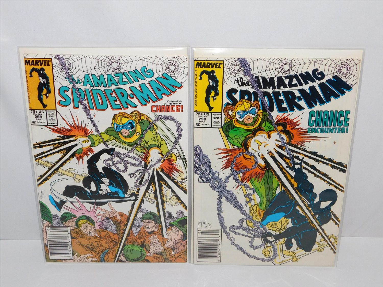 Lot of 2 The Amazing Spider-Man Comics #298 and #299. First Cameo Appearances of Venom. Both Newsstand Edition. All invoices must be paid within 24 hours of the sale. All items are shipped USPS or UPS and will be billed separately. A $12 handling fee is added to the shipping price per lot if shipped in house. Some items or large quantity of purchases will be packed and shipped via the Monmouth Junction UPS store. Local pickups are at our Monmouth Junction location on Thursday, Friday, Saturday and Monday ONLY! All pickups are by appointment only. Any condition issues will be listed in the description. Please read the terms for full information.