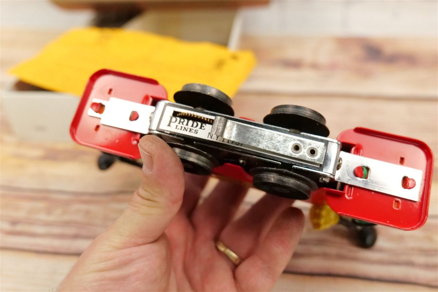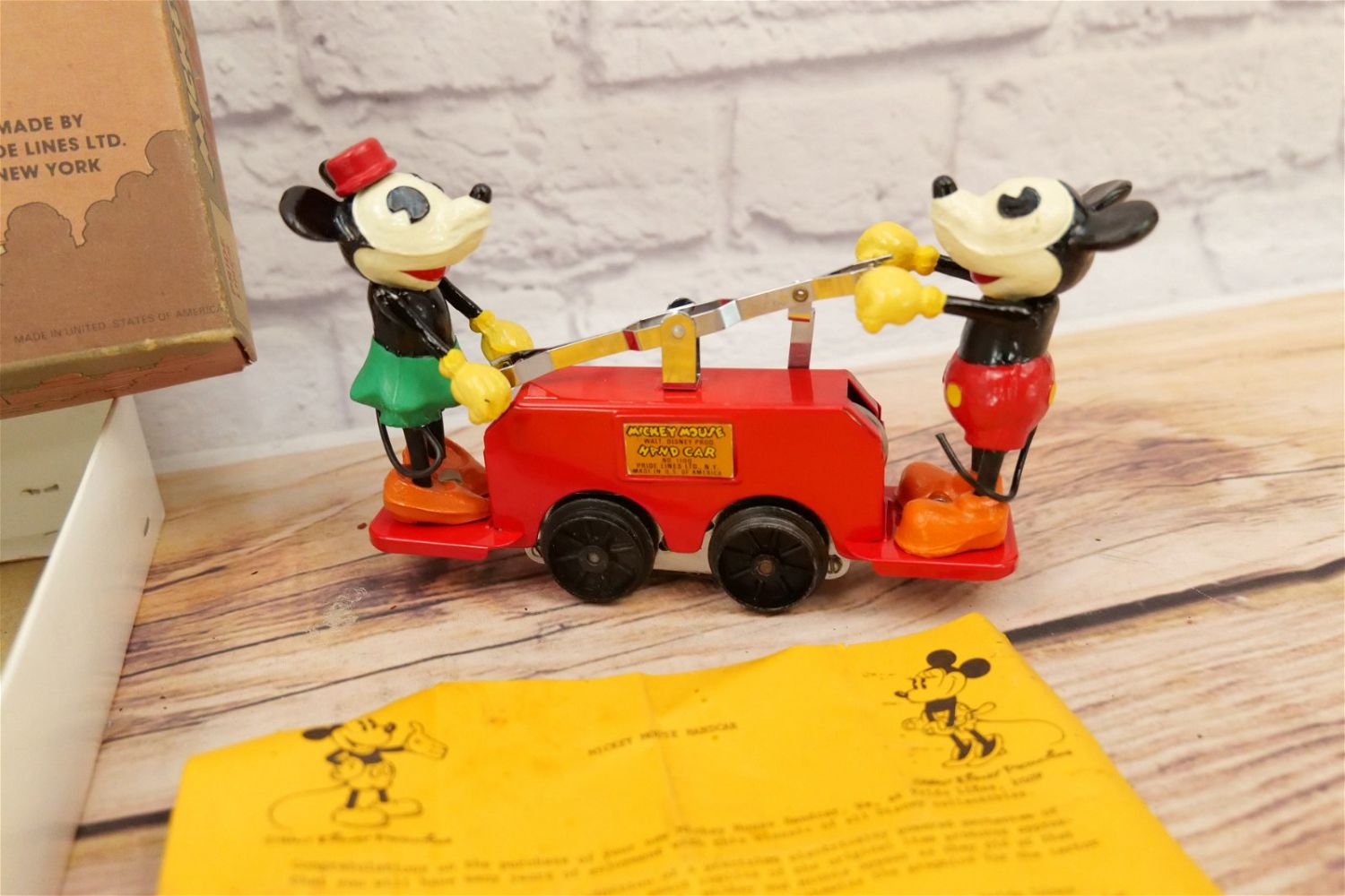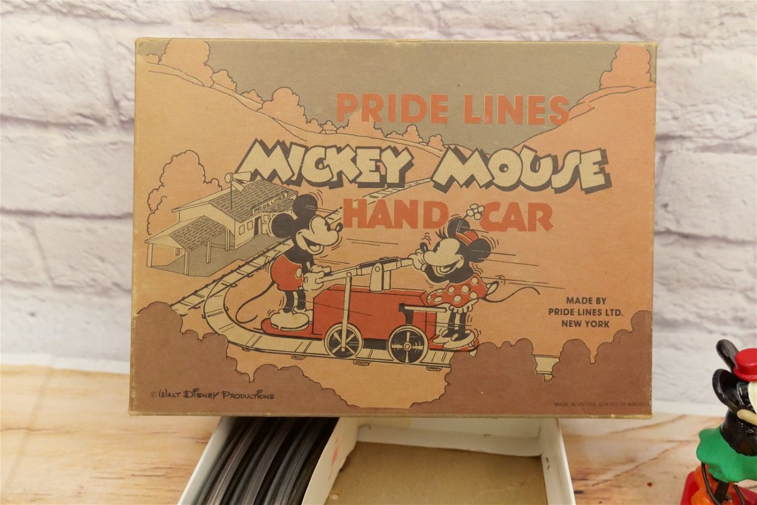 O27 Pride Lines Mickey Mouse Hand Car No. 1100. Walt Disney Productions. Marked NY 11757. Comes with original box, 8 curved track and paperwork. In very good to near mint condition. All invoices must be paid within 24 hours of the sale. We offer multiple shipping options, please read the terms as they have changed. We also offer Pick-Ups Friday, Saturday, and Monday immediately following the sale. BY APPOINTMENT ONLY. PLEASE READ THE SHIPPING TERMS!