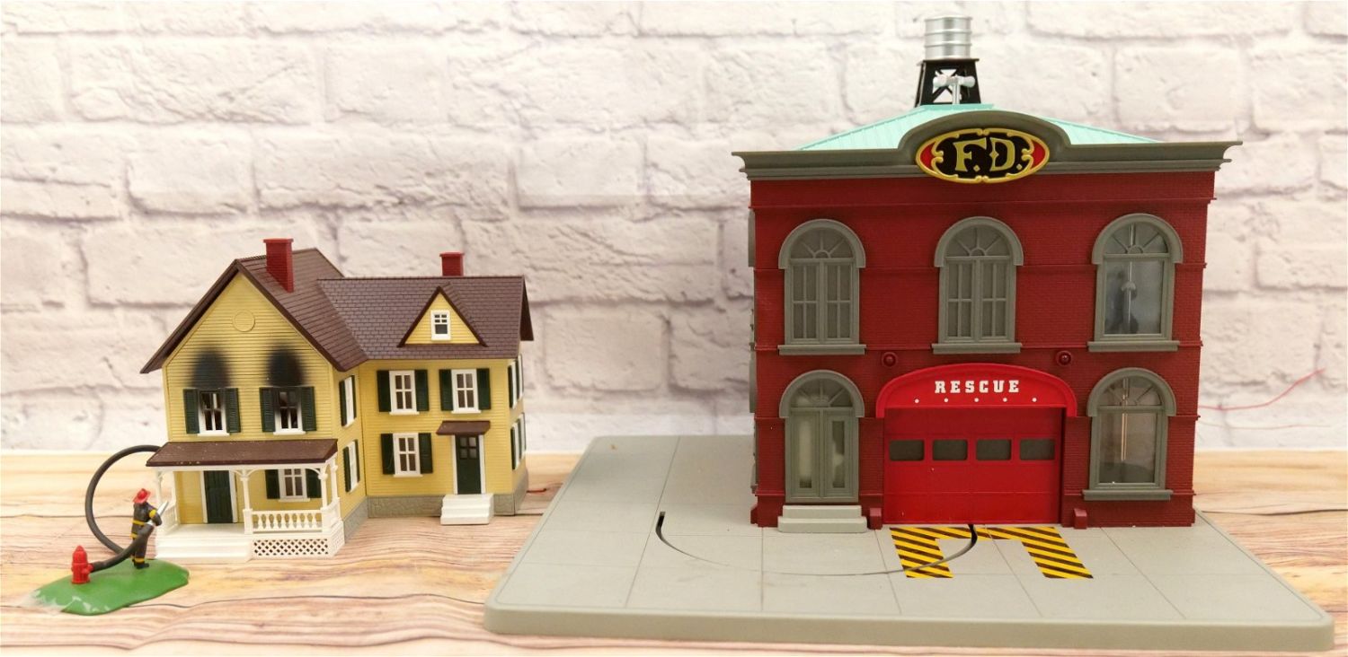 Lot of 2 MTH O27 Train Accessories including Animated House on Fire with Firemen Extinguishing the Fire and Old Time Firehouse with Animated Fire Truck. Largest measures 13" tall. Some parts need to be reglued. Some may be incomplete. Several Pieces have been customized with snow. You are buying the lot AS-IS. Please see photos. All invoices must be paid within 24 hours of the sale. We offer multiple shipping options, please read the terms as they have changed. We also offer Pick-Ups Friday, Saturday, and Monday immediately following the sale. BY APPOINTMENT ONLY. PLEASE READ THE SHIPPING TERMS!
