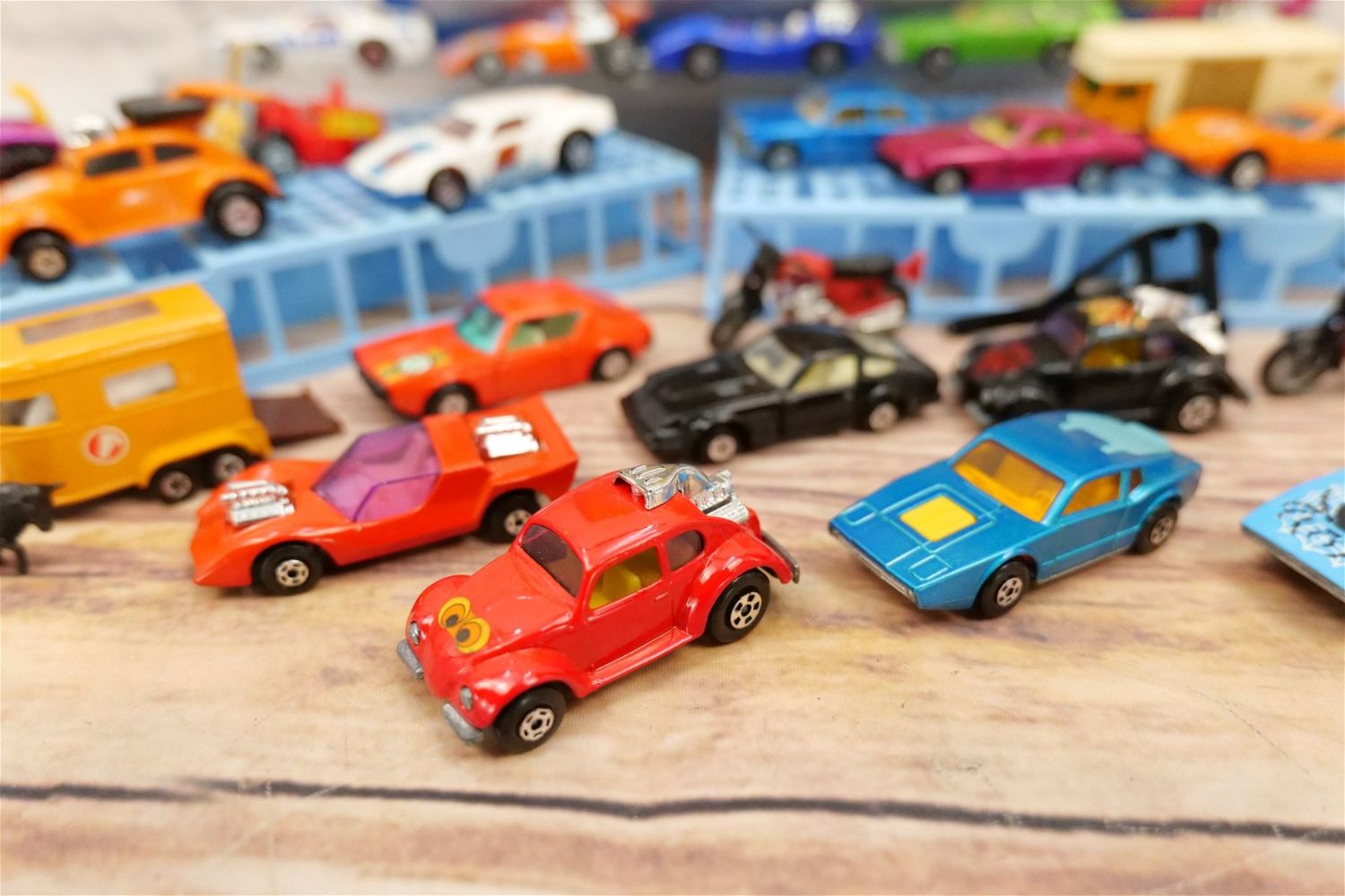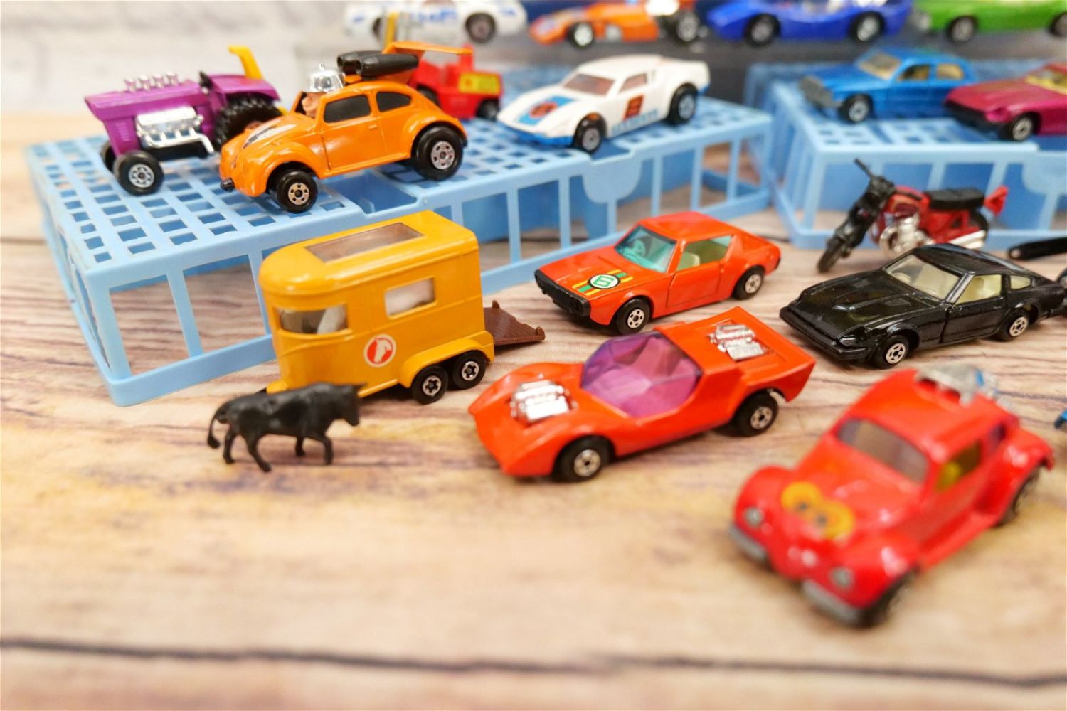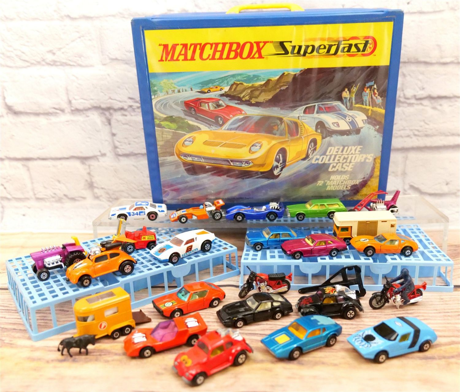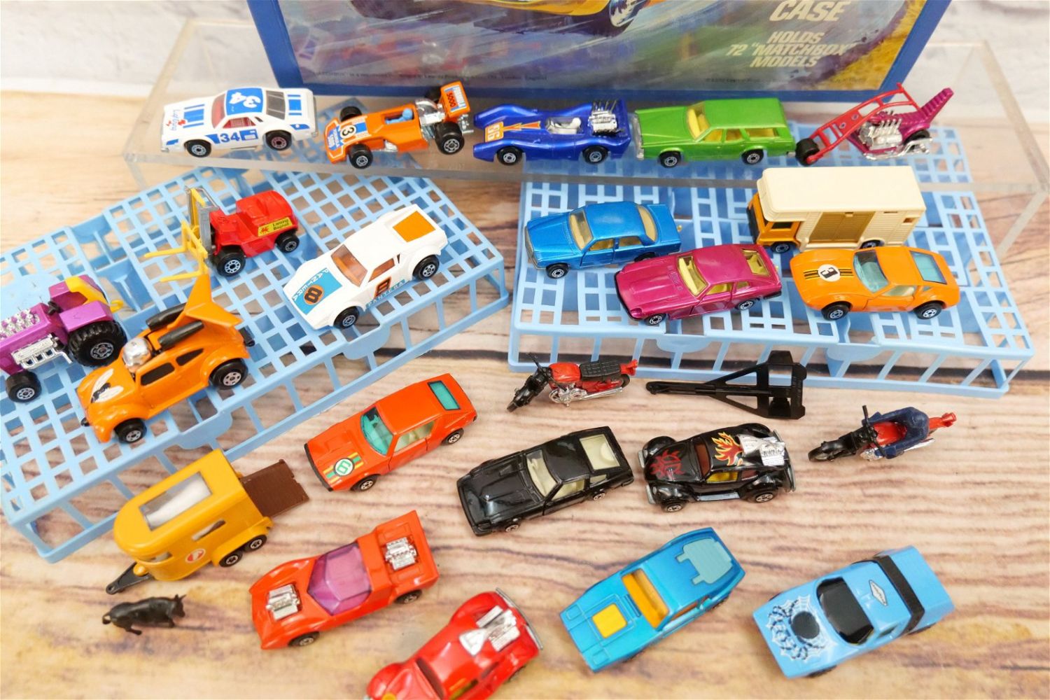 Group Lot of 24 Vintage Matchbox Cars including Racecars, Motorcycles, 1970’s Sedans and More. Comes in Matchbox Superfast Carrying Case – Missing One Tray. All in excellent to near mint condition. All invoices must be paid within 24 hours of the sale. We offer multiple shipping options, please read the terms as they have changed. We also offer Pick-Ups Friday, Saturday, and Monday immediately following the sale. BY APPOINTMENT ONLY. PLEASE READ THE SHIPPING TERMS!