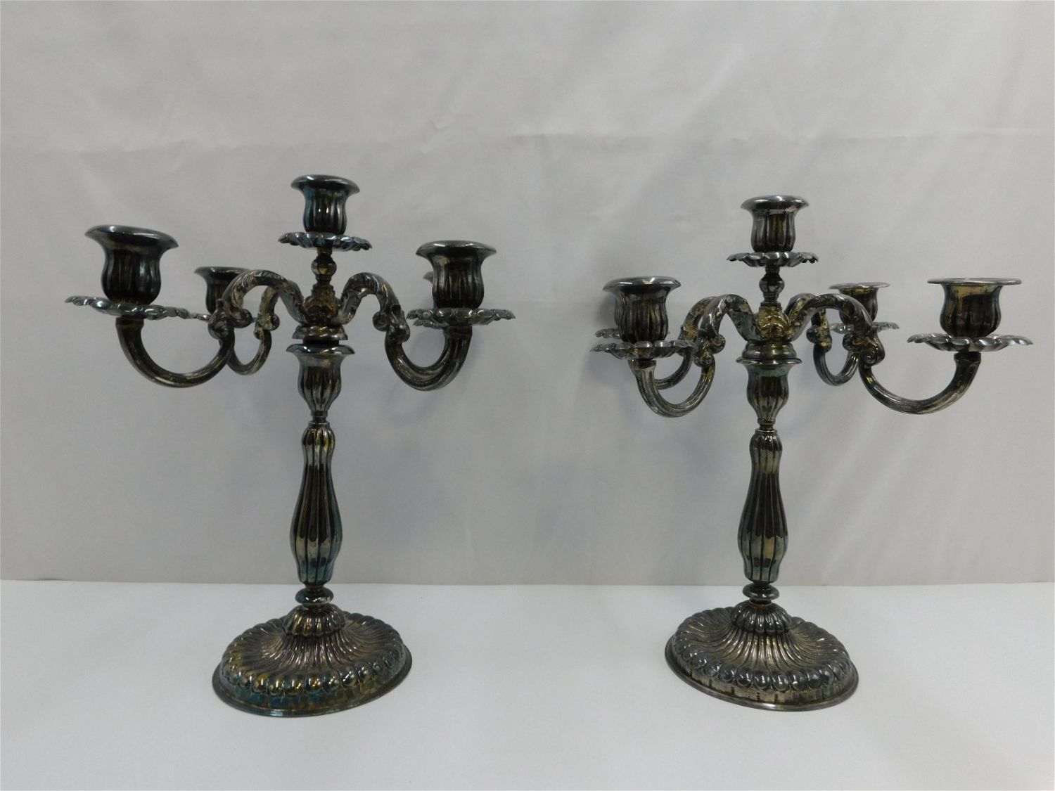 Pair of Silverplated Candelabras. Measures 13.5" tall x 10" wide. All invoices must be paid within 24 hours of the sale. Shipping options are the Liveaship from liveauctionners as seen on the listing, in-house shipping on small lots, and the local UPS Store. Liveship is only one option. Please see shipping terms for all options. Local pickups are at our Monmouth Junction location on Friday, Saturday and Monday ONLY! All pickups are by appointment only. Any condition issues will be listed in the description. Please read the terms for full information.