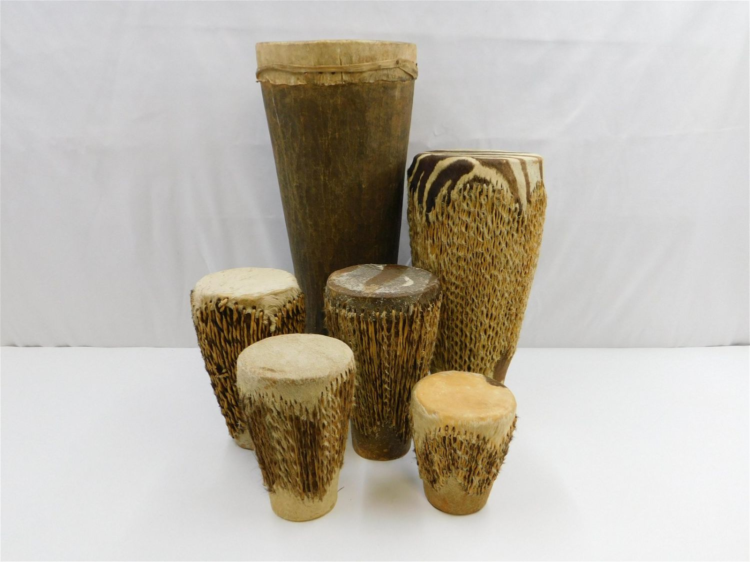 Lot of African Style Drums. One drum cowhide is torn. Largest measures 22" tall x 9" wide. All invoices must be paid within 24 hours of the sale. Shipping options are the Liveaship from liveauctionners as seen on the listing, in-house shipping on small lots, and the local UPS Store. Liveship is only one option. Please see shipping terms for all options. Local pickups are at our Monmouth Junction location on Friday, Saturday and Monday ONLY! All pickups are by appointment only. Any condition issues will be listed in the description. Please read the terms for full information.