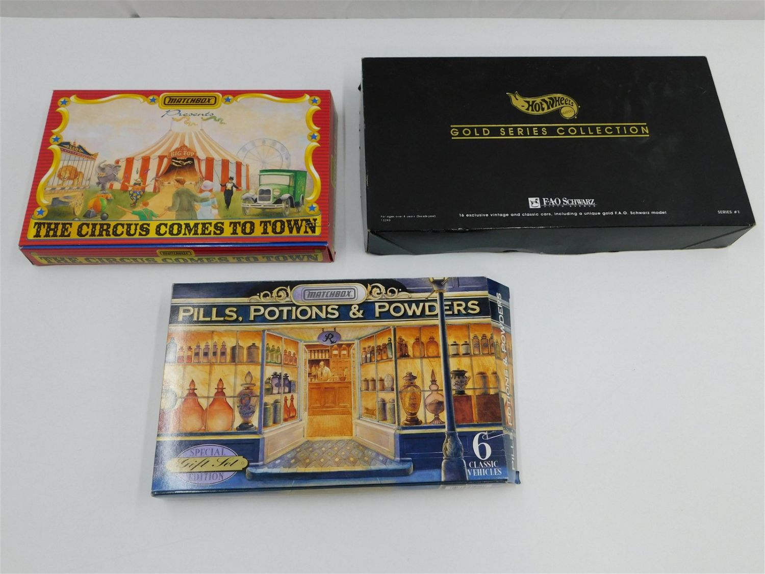 Lot of Hot Wheels and Matchbox Car Sets including Hot Wheels Gold Series Collection FAO Schwartz, and Matchbox Pills Potions and Powders, and The Circus Comes to Town. All invoices must be paid within 24 hours of the sale. Shipping options are the Liveaship from liveauctionners as seen on the listing, in-house shipping on small lots, and the local UPS Store. Liveship is only one option. Please see shipping terms for all options. Local pickups are at our Monmouth Junction location on Friday, Saturday and Monday ONLY! All pickups are by appointment only. Any condition issues will be listed in the description. Please read the terms for full information.