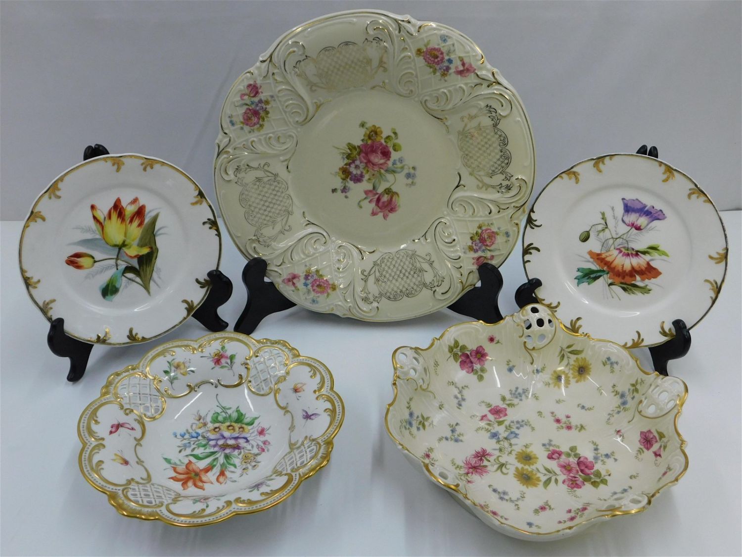 Lot of German Porcelain including Rosenthal Center Bowl, Bavaria Hand Painted Center Bowl with Lattice Work, Schruarchen Hammer Plate and Pair of Hand Painted Dessert Plates. Largest measures 12.5" diameter. All invoices must be paid within 24 hours of the sale. Shipping options are the Liveaship from liveauctionners as seen on the listing, in-house shipping on small lots, and the local UPS Store. Liveship is only one option. Please see shipping terms for all options. Local pickups are at our Monmouth Junction location on Friday, Saturday and Monday ONLY! All pickups are by appointment only. Any condition issues will be listed in the description. Please read the terms for full information.