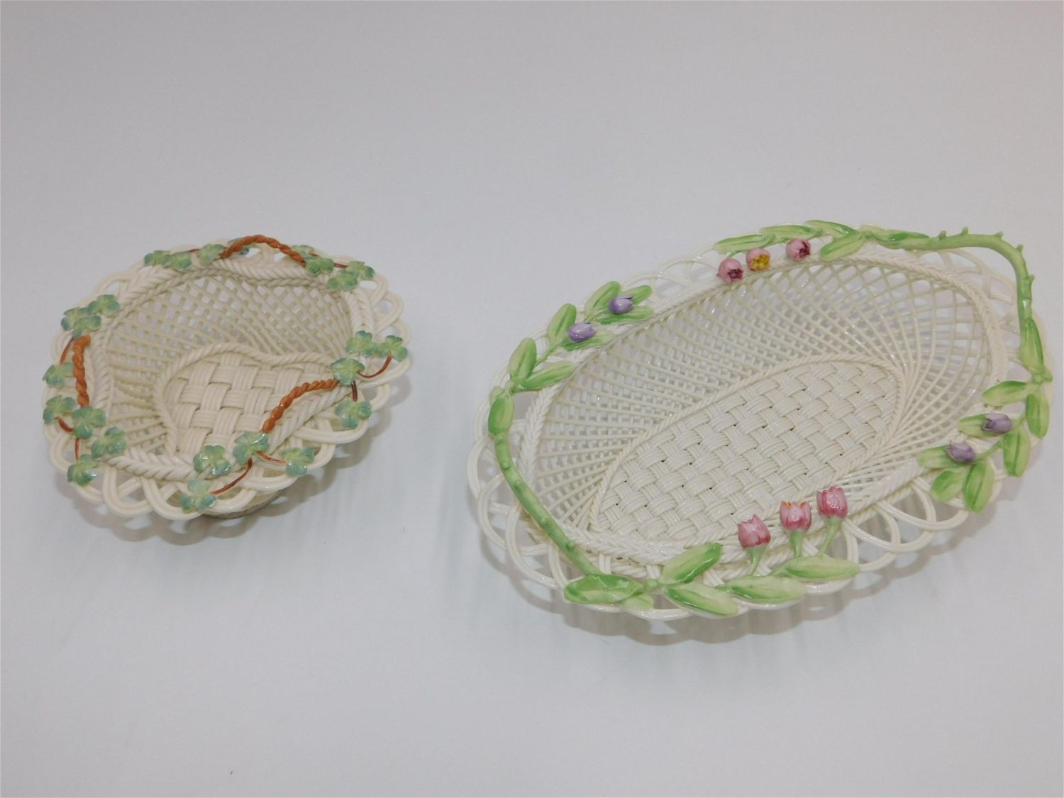 Lot of 2 Belleek Baskets including Belleek Tulip Bouquet Basket – Limited Edition Annual Basket 2008 #875/1500 – Measures 2.5" tall x 9.5" wide and Belleek St. Patrick’s Day Basket – Measures 2.5" tall x 5.5" wide. All invoices must be paid within 24 hours of the sale. Shipping options are the Liveaship from liveauctionners as seen on the listing, in-house shipping on small lots, and the local UPS Store. Liveship is only one option. Please see shipping terms for all options. Local pickups are at our Monmouth Junction location on Friday, Saturday and Monday ONLY! All pickups are by appointment only. Any condition issues will be listed in the description. Please read the terms for full information.