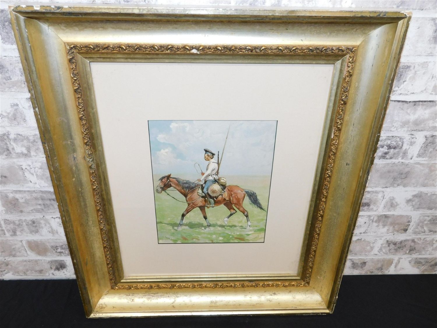 Framed Print by Frederic Remington (1861-1909). Depicting military man on horseback. Measures 24" tall x 21" wide. All invoices must be paid within 24 hours of the sale. Shipping options are the Liveaship from liveauctionners as seen on the listing, in-house shipping on small lots, and the local UPS Store. Liveship is only one option. Please see shipping terms for all options. Local pickups are at our Monmouth Junction location on Thursday, Friday, Saturday and Monday ONLY! All pickups are by appointment only. Any condition issues will be listed in the description. Please read the terms for full information.