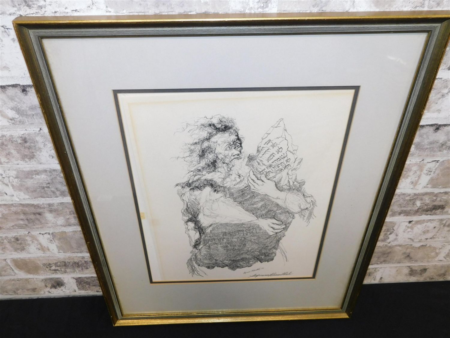 Engraving by Seymour Rosenthal (1921-2017). Depicting Moses. Signed lower right, dated in print 1961. Print is loose in frame. Measures 21" tall x 17" wide. All invoices must be paid within 24 hours of the sale. Shipping options are the Liveaship from liveauctionners as seen on the listing, in-house shipping on small lots, and the local UPS Store. Liveship is only one option. Please see shipping terms for all options. Local pickups are at our Monmouth Junction location on Thursday, Friday, Saturday and Monday ONLY! All pickups are by appointment only. Any condition issues will be listed in the description. Please read the terms for full information.