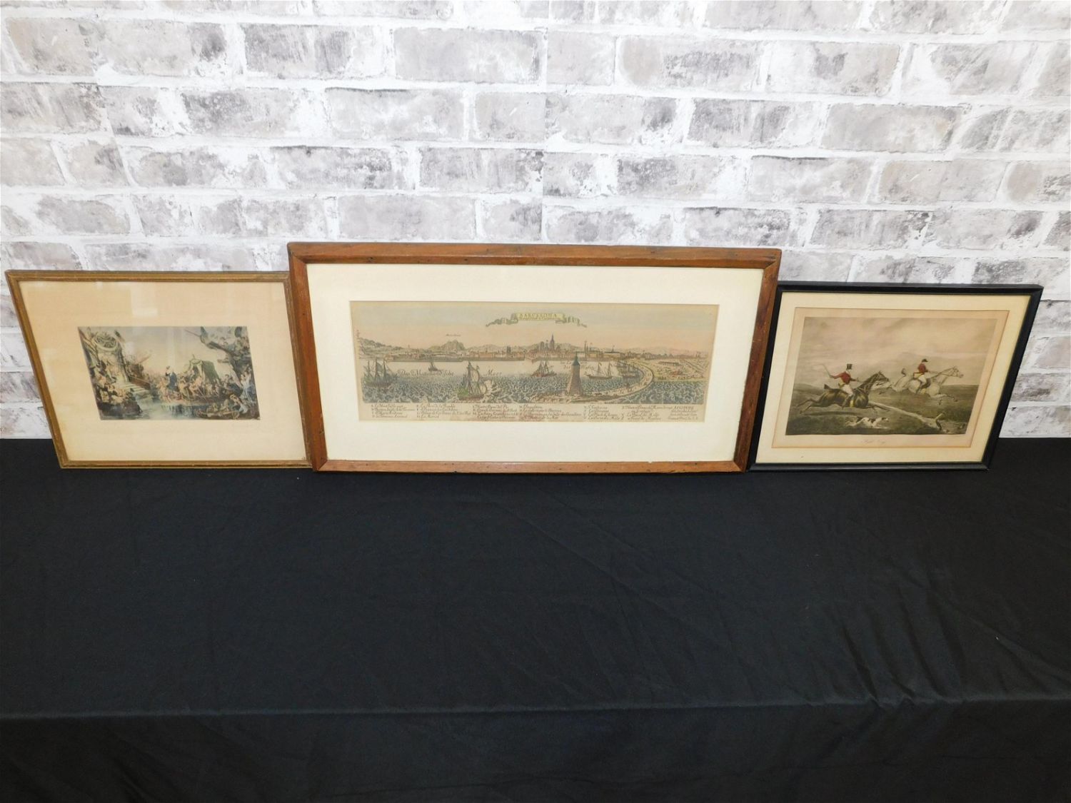 Lot of 3 Pieces of Hand Colored Art including Wood Cut of Barcelona, Etching of Hunt Scene Entitled "Full Cry" by Henry Alken (1785-1851), and an Etching of George Washington Entitled "First in Peace" by Lossing – after Henry Brueckner. Largest measures 13.75" tall x 25.5" wide. All invoices must be paid within 24 hours of the sale. Shipping options are the Liveaship from liveauctionners as seen on the listing, in-house shipping on small lots, and the local UPS Store. Liveship is only one option. Please see shipping terms for all options. Local pickups are at our Monmouth Junction location on Thursday, Friday, Saturday and Monday ONLY! All pickups are by appointment only. Any condition issues will be listed in the description. Please read the terms for full information.