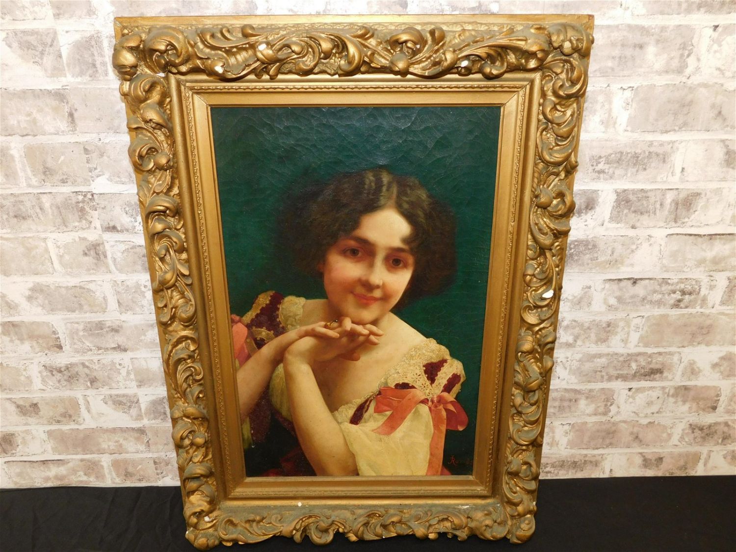 19th Century Oil on Canvas by J. Romes. Depicting Portrait of a Woman. Has Ornate frame. Frame has some loss and chips. Measures 29.5" tall x 22" wide. All invoices must be paid within 24 hours of the sale. Shipping options are the Liveaship from liveauctionners as seen on the listing, in-house shipping on small lots, and the local UPS Store. Liveship is only one option. Please see shipping terms for all options. Local pickups are at our Monmouth Junction location on Thursday, Friday, Saturday and Monday ONLY! All pickups are by appointment only. Any condition issues will be listed in the description. Please read the terms for full information.