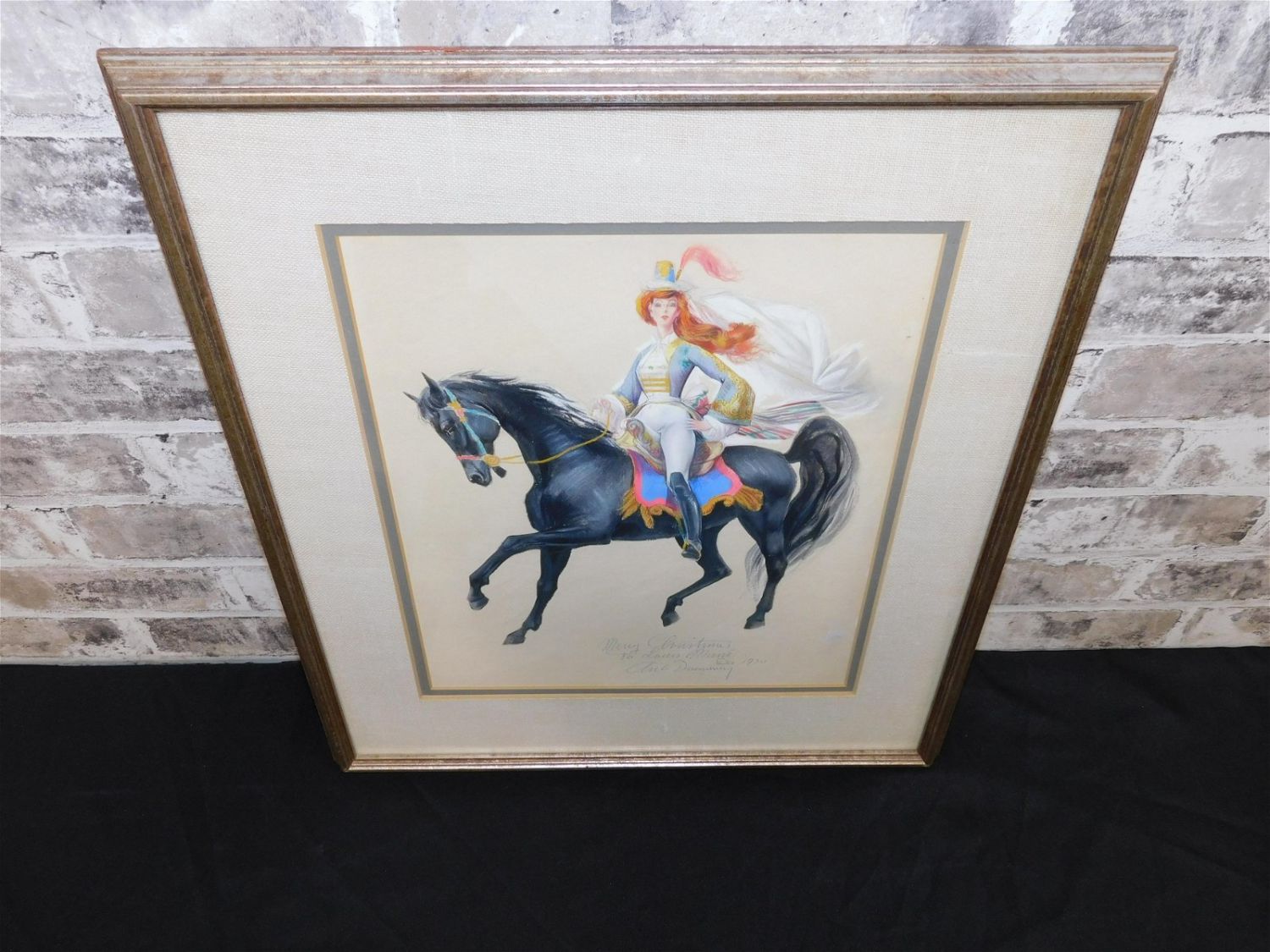 Watercolor Illustration depicting a Circus Girl on Horseback. Pencil Signed – Appears to be "Merry Christmas to Louis Mane Dec. 1970" A. Duenunery. Measures 20" tall x 17" wide. All invoices must be paid within 24 hours of the sale. Shipping options are the Liveaship from liveauctionners as seen on the listing, in-house shipping on small lots, and the local UPS Store. Liveship is only one option. Please see shipping terms for all options. Local pickups are at our Monmouth Junction location on Thursday, Friday, Saturday and Monday ONLY! All pickups are by appointment only. Any condition issues will be listed in the description. Please read the terms for full information.