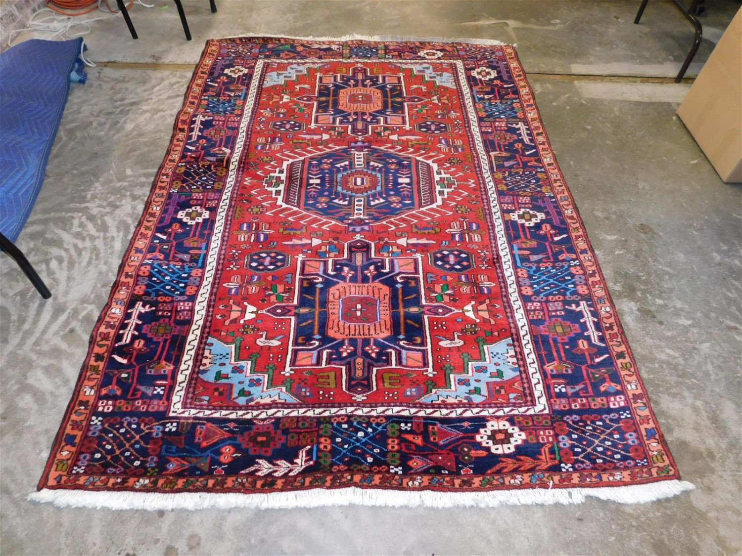 Handmade Semi-Antique Oversized Prayer Rug. Geometrical Design. Measures 84" long x 60" wide. All invoices must be paid within 24 hours of the sale. Shipping options are the Liveaship from liveauctionners as seen on the listing, in-house shipping on small lots, and the local UPS Store. Liveship is only one option. Please see shipping terms for all options. Local pickups are at our Monmouth Junction location on Thursday, Friday, Saturday and Monday ONLY! All pickups are by appointment only. Any condition issues will be listed in the description. Please read the terms for full information.