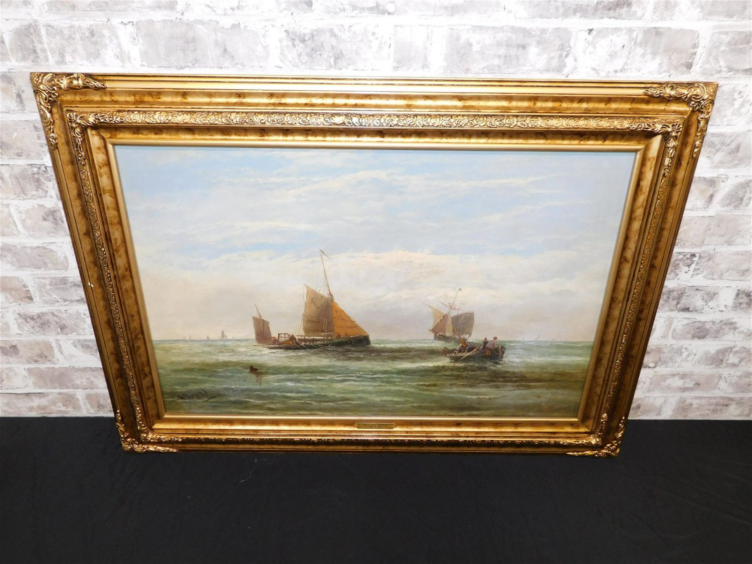 19th Century Oil on Board by William P. Rogers (1842-1872). Depicting fishing boats on a calm sea. Signed lower left. Measures 27" tall x 37" wide. All invoices must be paid within 24 hours of the sale. Shipping options are the Liveaship from liveauctionners as seen on the listing, in-house shipping on small lots, and the local UPS Store. Liveship is only one option. Please see shipping terms for all options. Local pickups are at our Monmouth Junction location on Thursday, Friday, Saturday and Monday ONLY! All pickups are by appointment only. Any condition issues will be listed in the description. Please read the terms for full information.