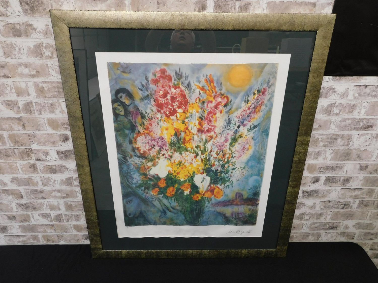 Limited Edition Lithograph by Marc Chagall (1887-1985). Entitled "Bouquet de Fleur" #182/500. Comes with COA on Back. Lithograph has water damage on bottom of white border but does not affect image. Measures 41" tall x 34.5" wide. All invoices must be paid within 24 hours of the sale. Shipping options are the Liveaship from liveauctionners as seen on the listing, in-house shipping on small lots, and the local UPS Store. Liveship is only one option. Please see shipping terms for all options. Local pickups are at our Monmouth Junction location on Thursday, Friday, Saturday and Monday ONLY! All pickups are by appointment only. Any condition issues will be listed in the description. Please read the terms for full information.