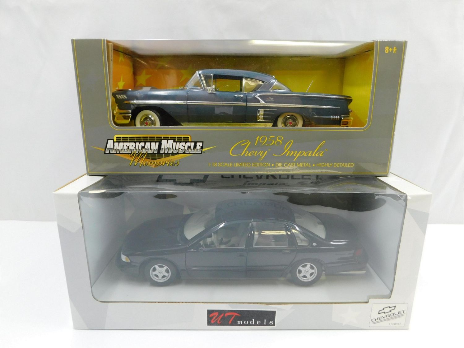 Lot of 2 Chevrolet Impala 1:18 Scale Diecast Cars including UT Models 1996 Impala SS – Black and American Muscle Memories 1958 Chevrolet Impala. Both are 1:18 Scale and come in the original boxes. All invoices must be paid within 24 hours of the sale. Shipping options are the Liveaship from liveauctionners as seen on the listing, in-house shipping on small lots, and the local UPS Store. Liveship is only one option. Please see shipping terms for all options. Local pickups are at our Monmouth Junction location on Friday, Saturday and Monday ONLY! All pickups are by appointment only. Any condition issues will be listed in the description. Please read the terms for full information.