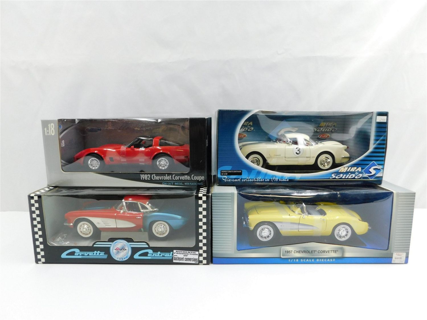 Lot of 4 Diecast 1:18 Scale Corvette Cars including Welly 1982 Chevrolet Corvette Coupe, Ertl Corvette Central 1961 Corvette, Mira Solido Chevrolet Corvette Coupe Racing, and Yat Ming 1957 Chevrolet Corvette. All come in original boxes. All invoices must be paid within 24 hours of the sale. All items are shipped USPS or UPS and will be billed separately. A $12 handling fee is added to the shipping price per lot if shipped in house. Local pickups are at our Monmouth Junction location on Friday, Saturday and Monday ONLY! All pickups are by appointment only. Any condition issues will be listed in the description. Please read the terms for full information.
