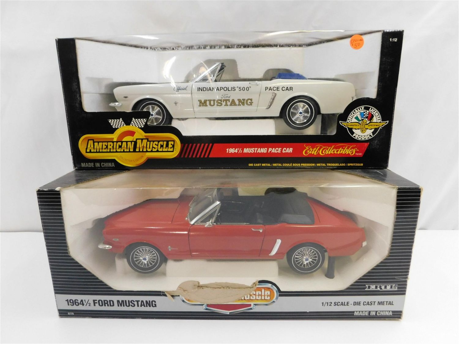 Lot of 2 American Muscle 1:12 Scale Diecast Cars including 1964 1/2 Ford Mustang and 1964 1/2 Mustang Pace Car. Both come in original boxes. The red car box has some damage to the front. All invoices must be paid within 24 hours of the sale. Shipping options are the Liveaship from liveauctionners as seen on the listing, in-house shipping on small lots, and the local UPS Store. Liveship is only one option. Please see shipping terms for all options. Local pickups are at our Monmouth Junction location on Friday, Saturday and Monday ONLY! All pickups are by appointment only. Any condition issues will be listed in the description. Please read the terms for full information.