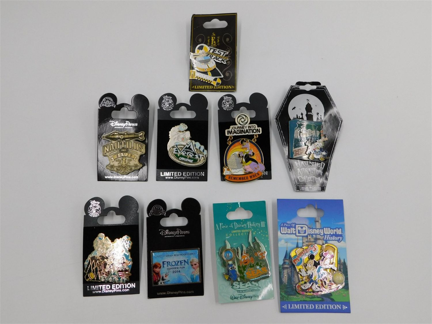 Lot of 9 Disney Attractions Pins including A Piece of Walt Disney World History – Mannequins Dance Palace, A Piece of Disney History III The Seas, Journey into Imagination, Test Track, Haunted Attraction Collection, and More. Many are Limited Edition. All come on card backs. All invoices must be paid within 24 hours of the sale. Shipping options are the Liveaship from liveauctionners as seen on the listing, in-house shipping on small lots, and the local UPS Store. Liveship is only one option. Please see shipping terms for all options. Local pickups are at our Monmouth Junction location on Friday, Saturday and Monday ONLY! All pickups are by appointment only. Any condition issues will be listed in the description. Please read the terms for full information.