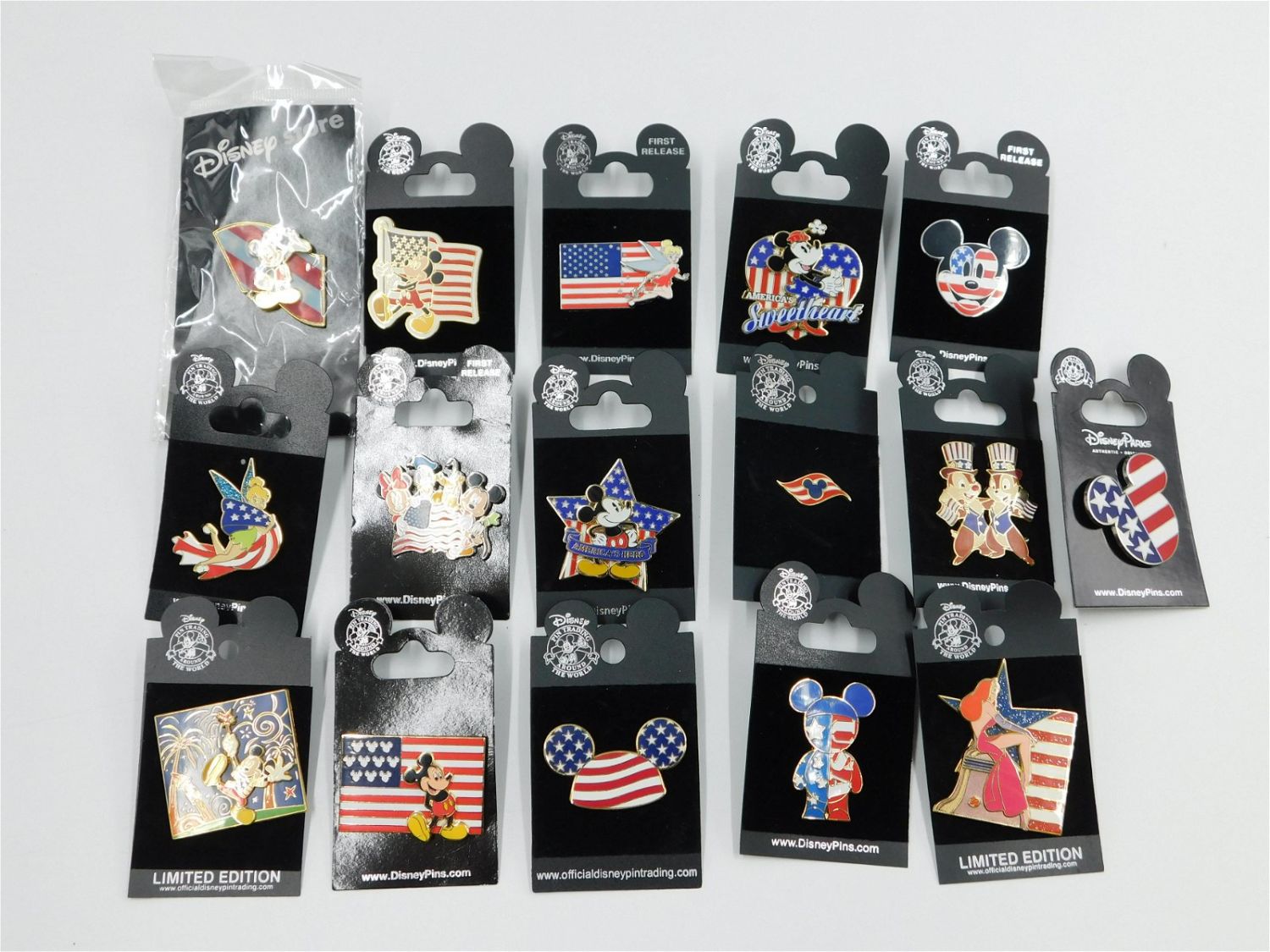 Lot of 16 Disney Patriotic Pins including Characters such as Mickey Mouse, Chip and Dale, Jessica Rabbit, Minnie Mouse, Tinker Bell, and More. All are patriotic/flag/USA Themed. Includes open and limited editions. All come with card backs. All invoices must be paid within 24 hours of the sale. Shipping options are the Liveaship from liveauctionners as seen on the listing, in-house shipping on small lots, and the local UPS Store. Liveship is only one option. Please see shipping terms for all options. Local pickups are at our Monmouth Junction location on Friday, Saturday and Monday ONLY! All pickups are by appointment only. Any condition issues will be listed in the description. Please read the terms for full information.