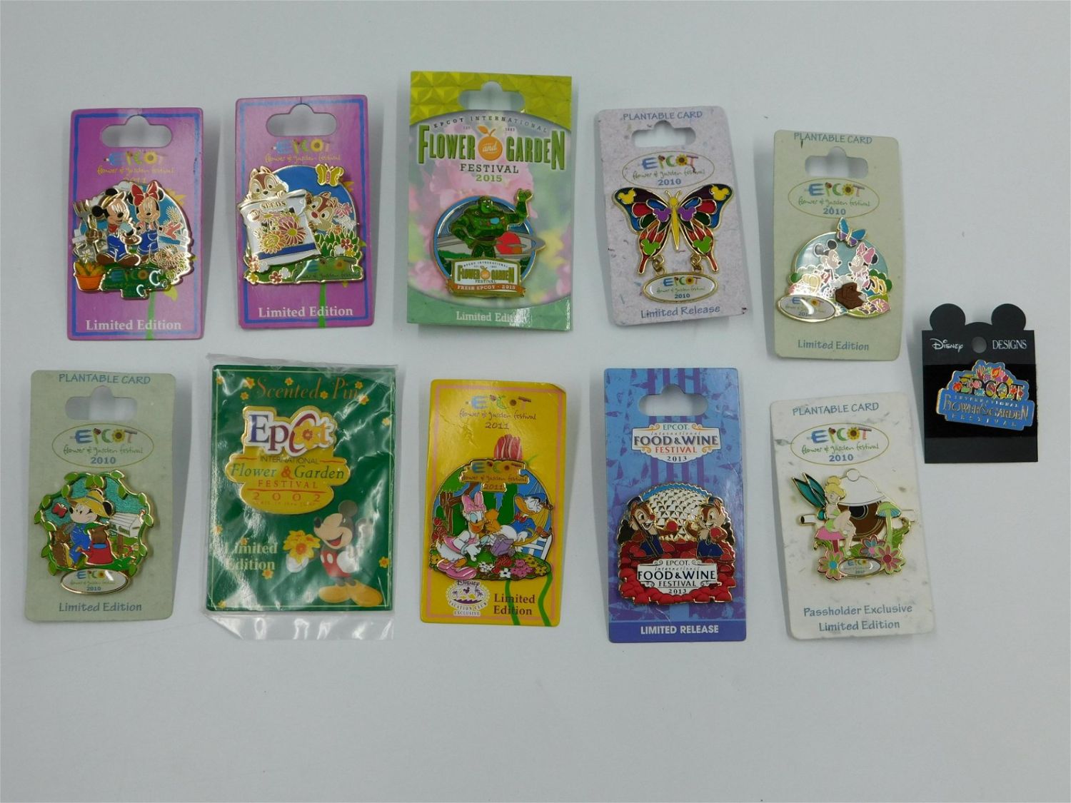 Lot of 11 Epcot Flower & Garden Festival Pins including Open Edition Title Pin, 2002 Edition, (4) 2010 Edition, (3) 2011 Edition, 2013 Edition and 2015 Edition. Most pins in this lot are limited edition. All come with card backs. All invoices must be paid within 24 hours of the sale. Shipping options are the Liveaship from liveauctionners as seen on the listing, in-house shipping on small lots, and the local UPS Store. Liveship is only one option. Please see shipping terms for all options. Local pickups are at our Monmouth Junction location on Friday, Saturday and Monday ONLY! All pickups are by appointment only. Any condition issues will be listed in the description. Please read the terms for full information.