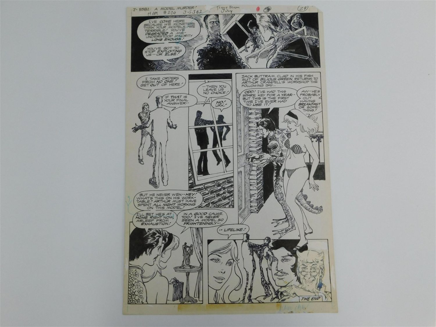 Original Comic Book Art – DC Comics – House of Mystery Issue #270 Page 29. Story "A Model Murder" -Penciler & Inker – Terry Henson. Features image of Cain and Frankenstein. Measures 16" tall x 10.5" wide. All items must be paid for within 24 hours of the sale. Shipping options are the Liveaship from liveauctionners as seen on the listing, in-house shipping on small lots, and the local UPS Store. Liveship is only one option. Please see shipping terms for all options. Local pickups are at our Monmouth Junction, NJ location on Friday, Saturday and Monday ONLY! All pickups are by appointment only. Any condition issues will be listed in the description. Please read the terms for full information.