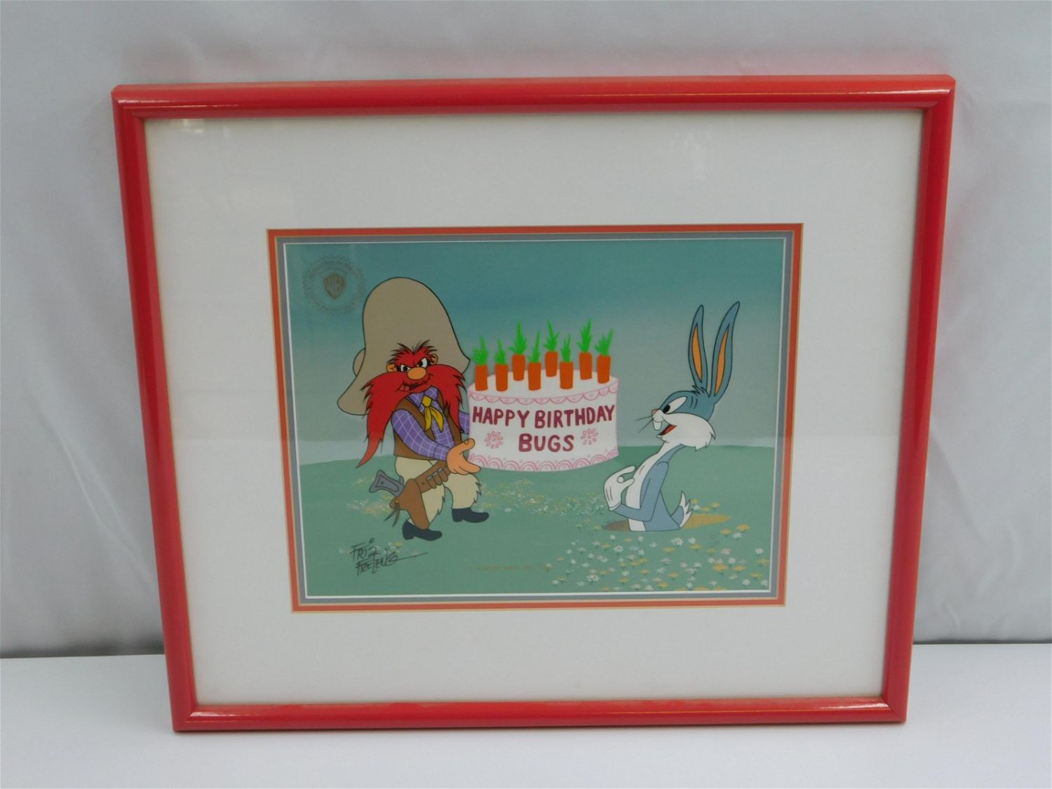 Warner Bros. Happy Birthday Bugs Hand Painted Limited Edition Cel. Warner Bros. 1990. Signed Friz Freleng. Framed and Matted. Frame measures 17" tall x 19.5" wide. All items must be paid for within 24 hours of the sale. Shipping options are the Liveaship from liveauctionners as seen on the listing, in-house shipping on small lots, and the local UPS Store. Liveship is only one option. Please see shipping terms for all options. Local pickups are at our Monmouth Junction, NJ location on Friday, Saturday and Monday ONLY! All pickups are by appointment only. Any condition issues will be listed in the description. Please read the terms for full information.