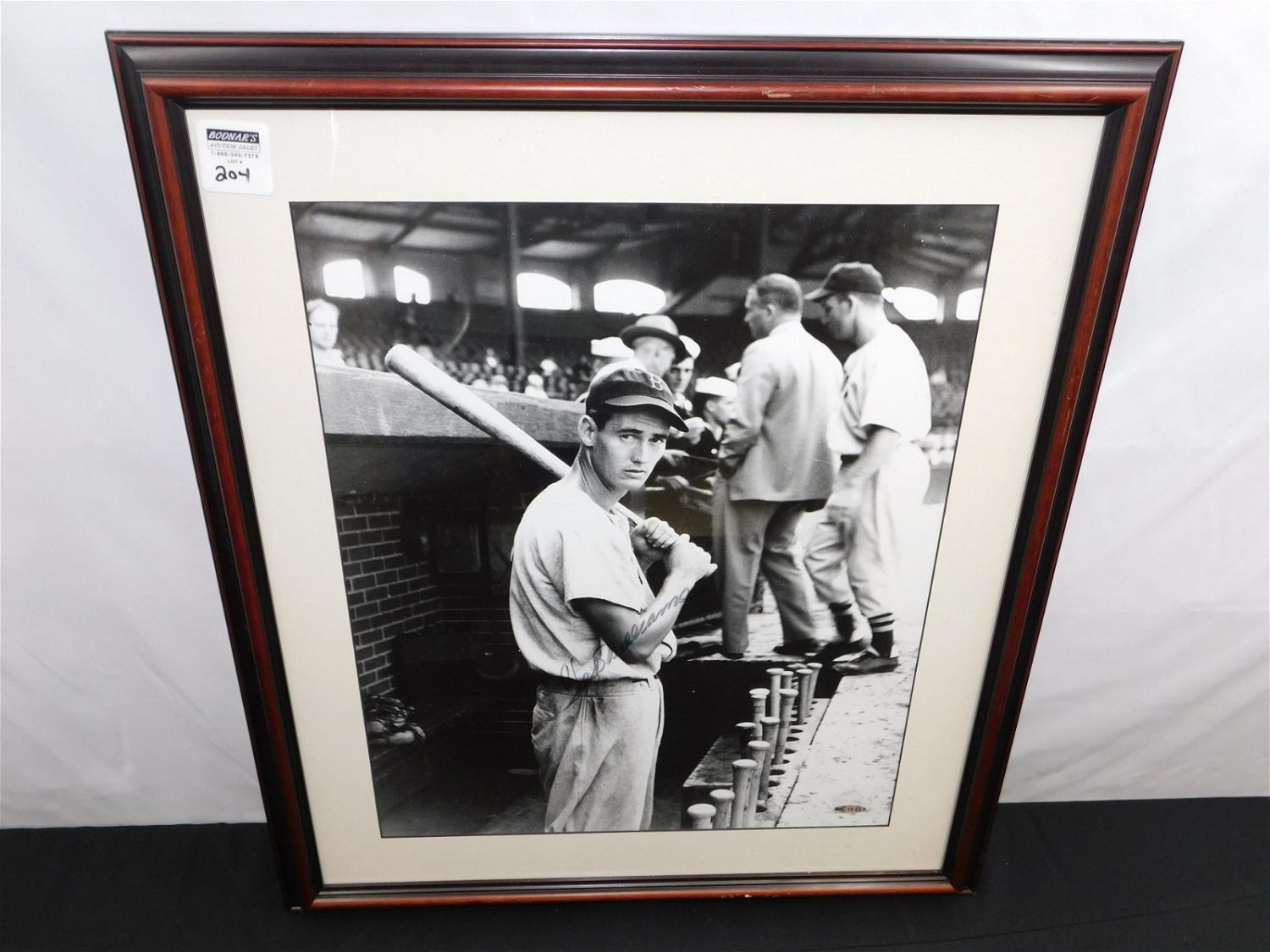 Framed Limited Edition Ted Williams Black & White Photograph – Signed by Ted Williams – Entitled "Dugout" – Number #246/500. Comes with Upper Deck COA. Measures 26" tall x 23" wide. All items must be paid for within 24 hours of the sale. Shipping options are the Liveaship from liveauctionners as seen on the listing, in-house shipping on small lots, and the local UPS Store. Liveship is only one option. Please see shipping terms for all options. Local pickups are at our Monmouth Junction, NJ location on Friday, Saturday and Monday ONLY! All pickups are by appointment only. Any condition issues will be listed in the description. Please read the terms for full information.
