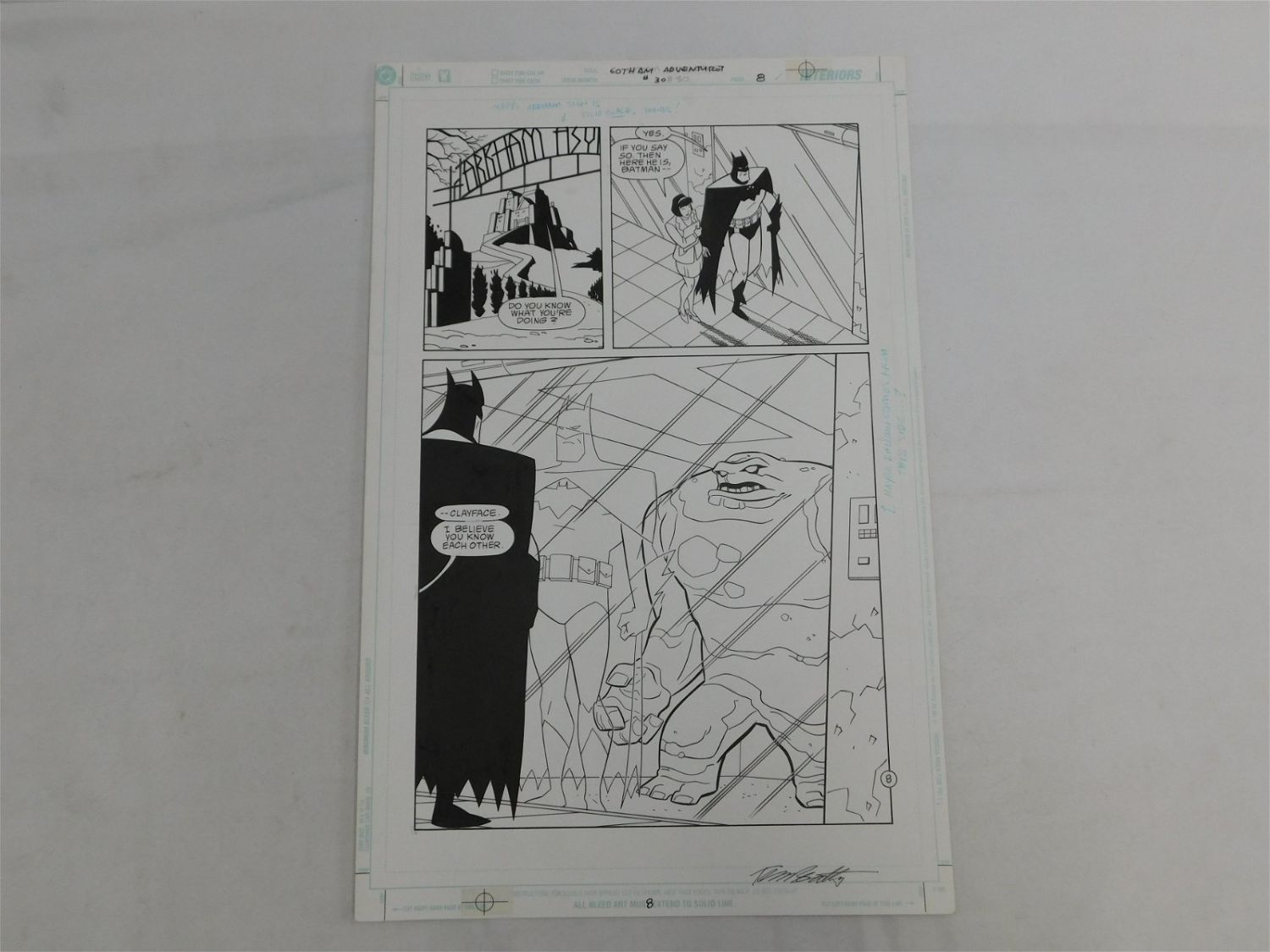 Original Comic Book Art – DC Comics – Gotham Adventure Issue #30 Page 8 – Inker – Terry Beatty – Signed lower right Terry Beatty. Has notations of changes. Includes images of Batman, Clayface, and Arkham Asylum. Measures 17" tall x 11.5" wide. All items must be paid for within 24 hours of the sale. Shipping options are the Liveaship from liveauctionners as seen on the listing, in-house shipping on small lots, and the local UPS Store. Liveship is only one option. Please see shipping terms for all options. Local pickups are at our Monmouth Junction, NJ location on Friday, Saturday and Monday ONLY! All pickups are by appointment only. Any condition issues will be listed in the description. Please read the terms for full information.