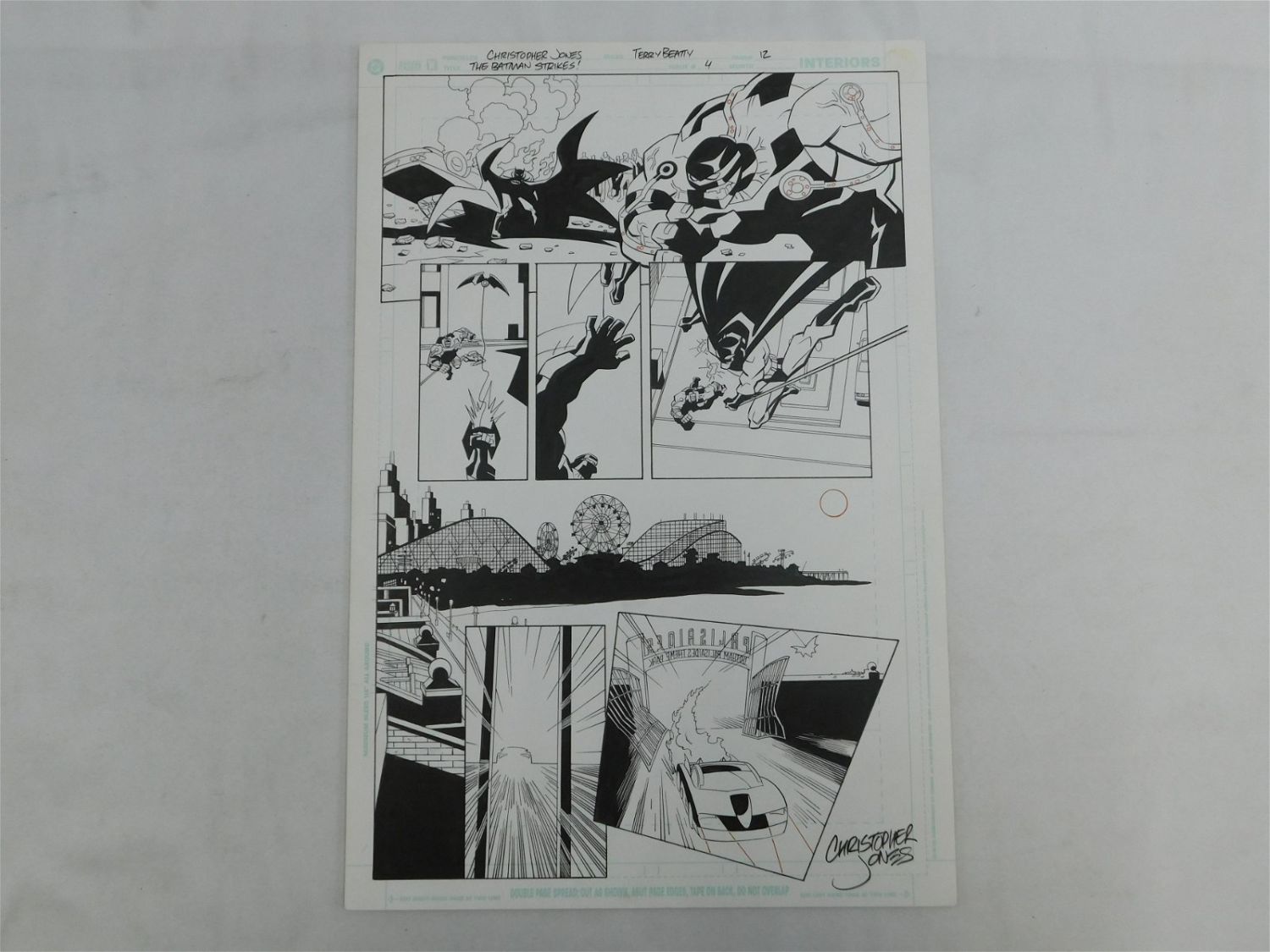 Original Comic Book Art – DC Comics – The Batman Strikes Issue #4 Page 1. Penciler Christopher Jones – Inker Terry Beatty. Signed lower right Christopher Jones. Includes Bane and 2 Full Body Images of Batman. Measures 17" tall x 11.5" wide. All items must be paid for within 24 hours of the sale. Shipping options are the Liveaship from liveauctionners as seen on the listing, in-house shipping on small lots, and the local UPS Store. Liveship is only one option. Please see shipping terms for all options. Local pickups are at our Monmouth Junction, NJ location on Friday, Saturday and Monday ONLY! All pickups are by appointment only. Any condition issues will be listed in the description. Please read the terms for full information.