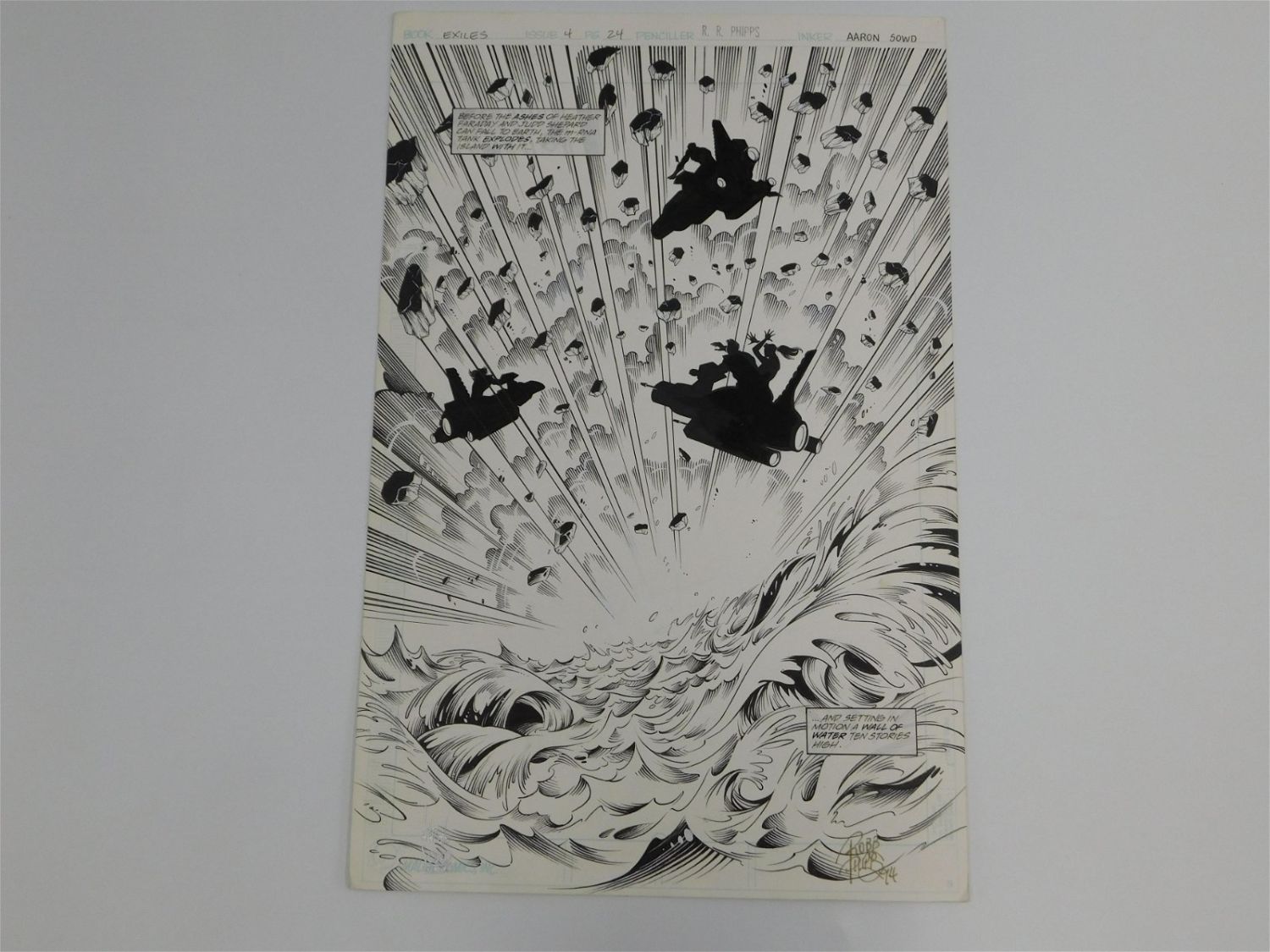 Original Comic Book Art – Marvel Comics – Exiles Splash Page – Issue #4 Page 24. Penciler RR Phipps – Inker Aaron Sowd. Signed by Penciler and Artist in Silver and Gold Ink. Measures 17.5 x 11.5. All items must be paid for within 24 hours of the sale. Shipping options are the Liveaship from liveauctionners as seen on the listing, in-house shipping on small lots, and the local UPS Store. Liveship is only one option. Please see shipping terms for all options. Local pickups are at our Monmouth Junction, NJ location on Friday, Saturday and Monday ONLY! All pickups are by appointment only. Any condition issues will be listed in the description. Please read the terms for full information.