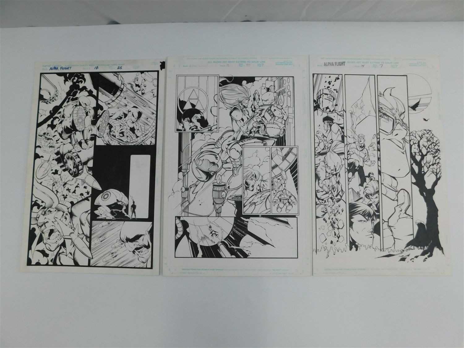 Lot of 3 Original Comic Book Art – Marvel Comics – Alpha Flight – Issue #12 Pages 25 & 30 and Issue #14 Page 17. Penciler Duncan Rouleau – Inker Troy Hubbs. Measures between 17" – 17.5" x 10.5" – 11.25". All items must be paid for within 24 hours of the sale. Shipping options are the Liveaship from liveauctionners as seen on the listing, in-house shipping on small lots, and the local UPS Store. Liveship is only one option. Please see shipping terms for all options. Local pickups are at our Monmouth Junction, NJ location on Friday, Saturday and Monday ONLY! All pickups are by appointment only. Any condition issues will be listed in the description. Please read the terms for full information.