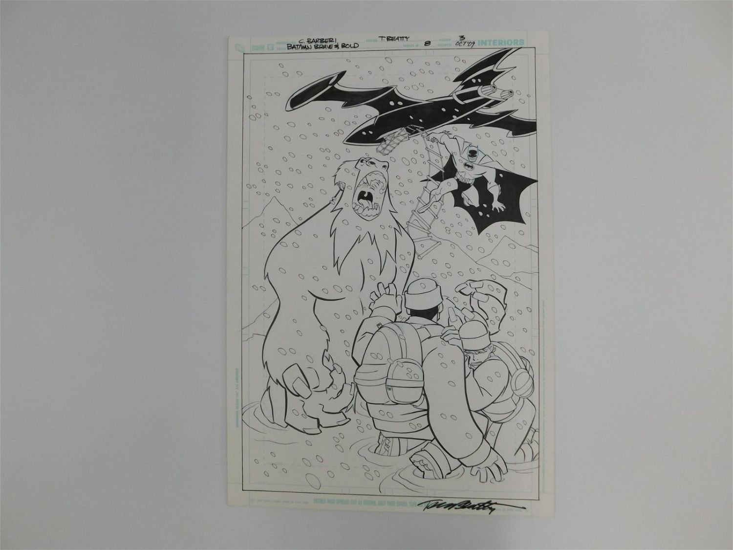 Original Comic Book Art – DC Comics – Batman Brave & Bold Full Page Splash – Issue #8 Page 3. Penciler Carlo Barberi – Inker – Terry Beatty – Signed by Inker Terry Beatty. Includes images of Batman and Yeti. Measures 17" tall x 11" wide. All items must be paid for within 24 hours of the sale. Shipping options are the Liveaship from liveauctionners as seen on the listing, in-house shipping on small lots, and the local UPS Store. Liveship is only one option. Please see shipping terms for all options. Local pickups are at our Monmouth Junction, NJ location on Friday, Saturday and Monday ONLY! All pickups are by appointment only. Any condition issues will be listed in the description. Please read the terms for full information.
