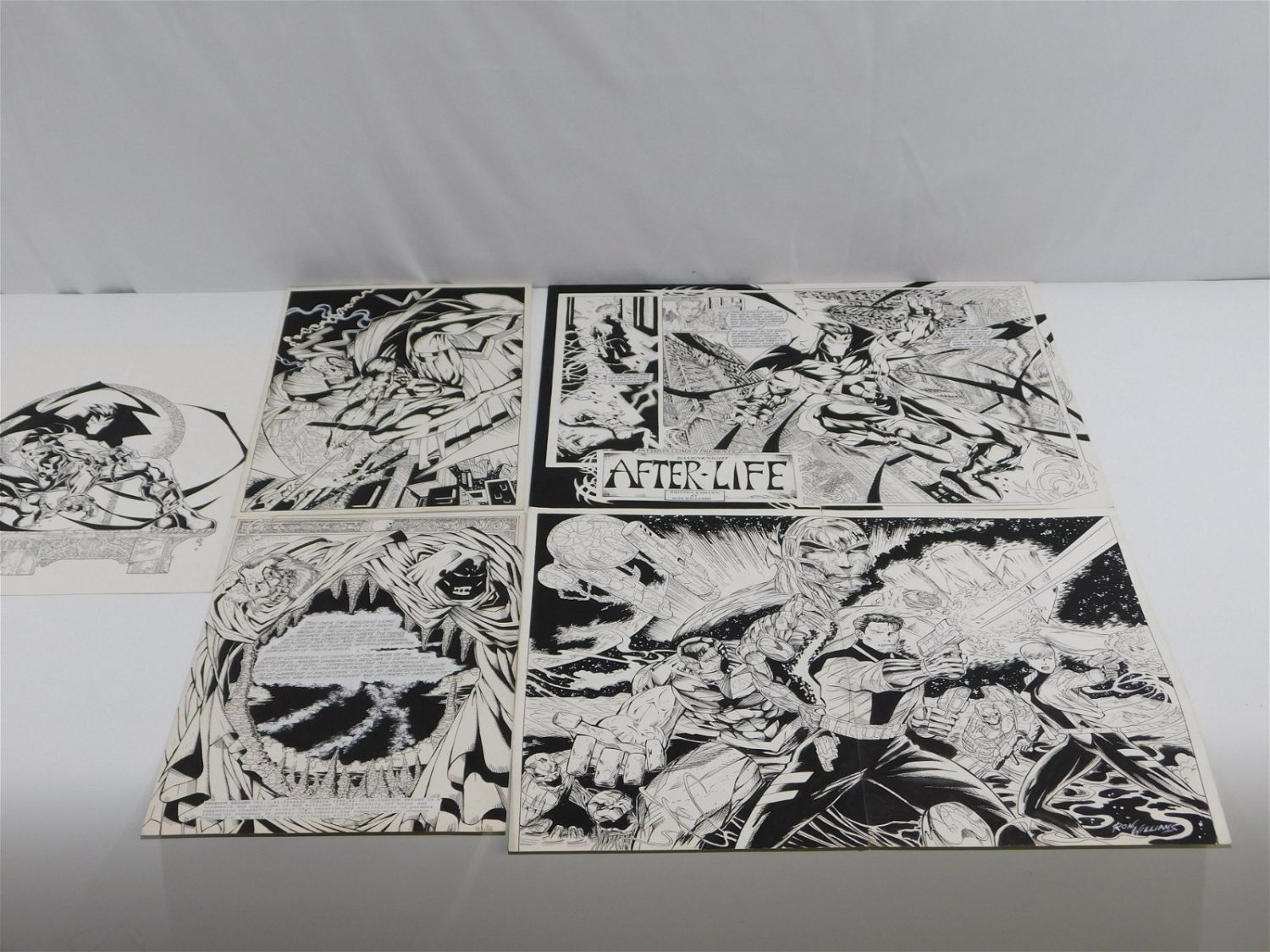 Lot of Original Comic Art – Ron Williams Mixed Art including (2) Double Page Spreads Techmen and After-Life Page 4 & 5, Pin-Up/Commission Piece Signed by Ron Williams, Phantom Knight Page Unknown and Other Unknown. All measure approx. 17" tall x 11" wide. All items must be paid for within 24 hours of the sale. Shipping options are the Liveaship from liveauctionners as seen on the listing, in-house shipping on small lots, and the local UPS Store. Liveship is only one option. Please see shipping terms for all options. Local pickups are at our Monmouth Junction, NJ location on Friday, Saturday and Monday ONLY! All pickups are by appointment only. Any condition issues will be listed in the description. Please read the terms for full information.