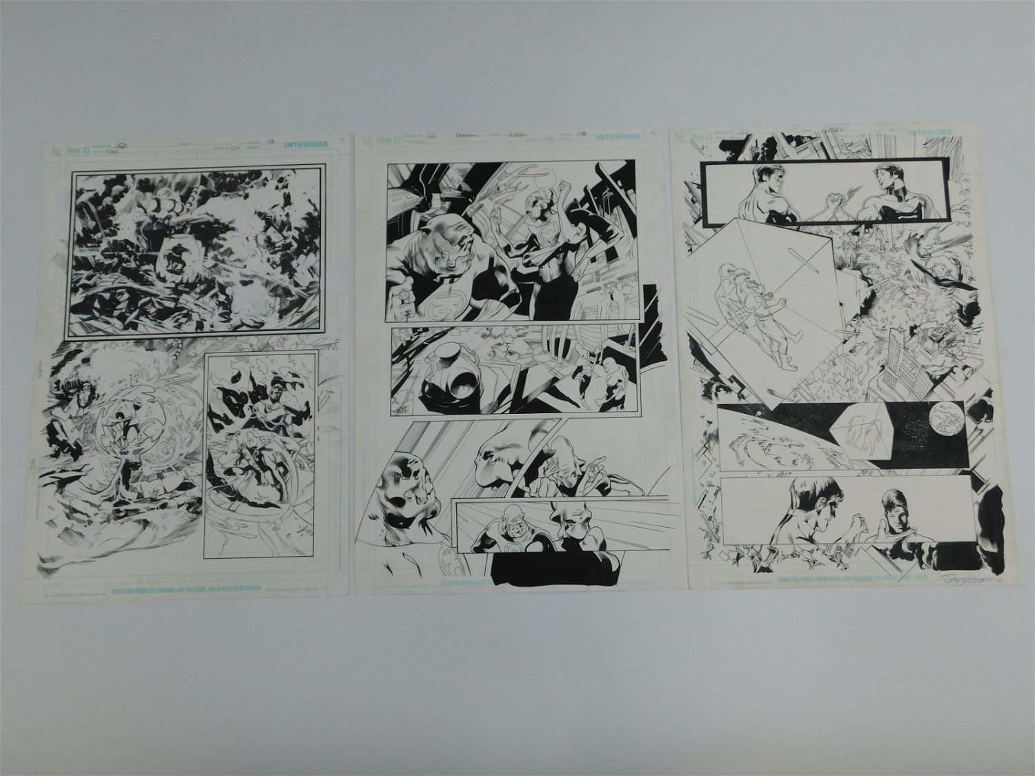 Lot of 3 Original Comic Book Art – DC Comics – Ion – Issue #1 Page 9, Issue #3 Page 2 – , and Issue #4 Page 11. Penciler Greg Tocchini – Inker – Jay Leisten. Measures 17" tall x 11.5 wide. All items must be paid for within 24 hours of the sale. Shipping options are the Liveaship from liveauctionners as seen on the listing, in-house shipping on small lots, and the local UPS Store. Liveship is only one option. Please see shipping terms for all options. Local pickups are at our Monmouth Junction, NJ location on Friday, Saturday and Monday ONLY! All pickups are by appointment only. Any condition issues will be listed in the description. Please read the terms for full information.