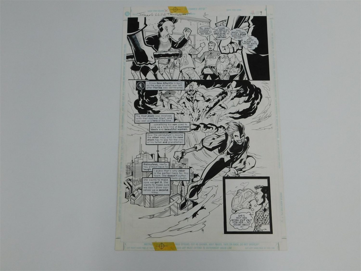 Original Comic Book Art – DC Comics – Joker’s Wild Tangent – Issue #1 Page 9. Penciler Joe Phillips – Inker Jason Rodriguez. Features Futuristic Female Joker. Measures 17" tall x 11" wide. All items must be paid for within 24 hours of the sale. Shipping options are the Liveaship from liveauctionners as seen on the listing, in-house shipping on small lots, and the local UPS Store. Liveship is only one option. Please see shipping terms for all options. Local pickups are at our Monmouth Junction, NJ location on Friday, Saturday and Monday ONLY! All pickups are by appointment only. Any condition issues will be listed in the description. Please read the terms for full information.