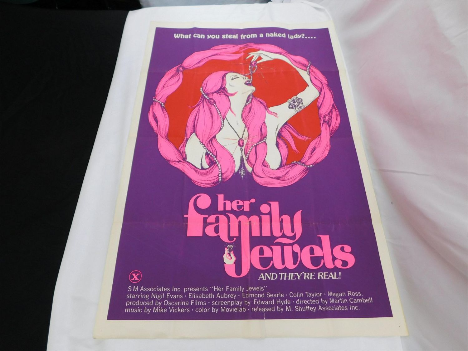 "Her Family Jewels" Movie Poster. Some normal wear by the folds and tear on the bottom edge. Measures 44.5" x 30". All invoices must be paid within 24 hours of the sale. Shipping options are the Liveaship from liveauctionners as seen on the listing, in-house shipping on small lots, and the local UPS Store. Liveship is only one option. Please see shipping terms for all options. Local pickups are at our Monmouth Junction location on Thursday, Friday, Saturday and Monday ONLY! All pickups are by appointment only. Any condition issues will be listed in the description. Please read the terms for full information.