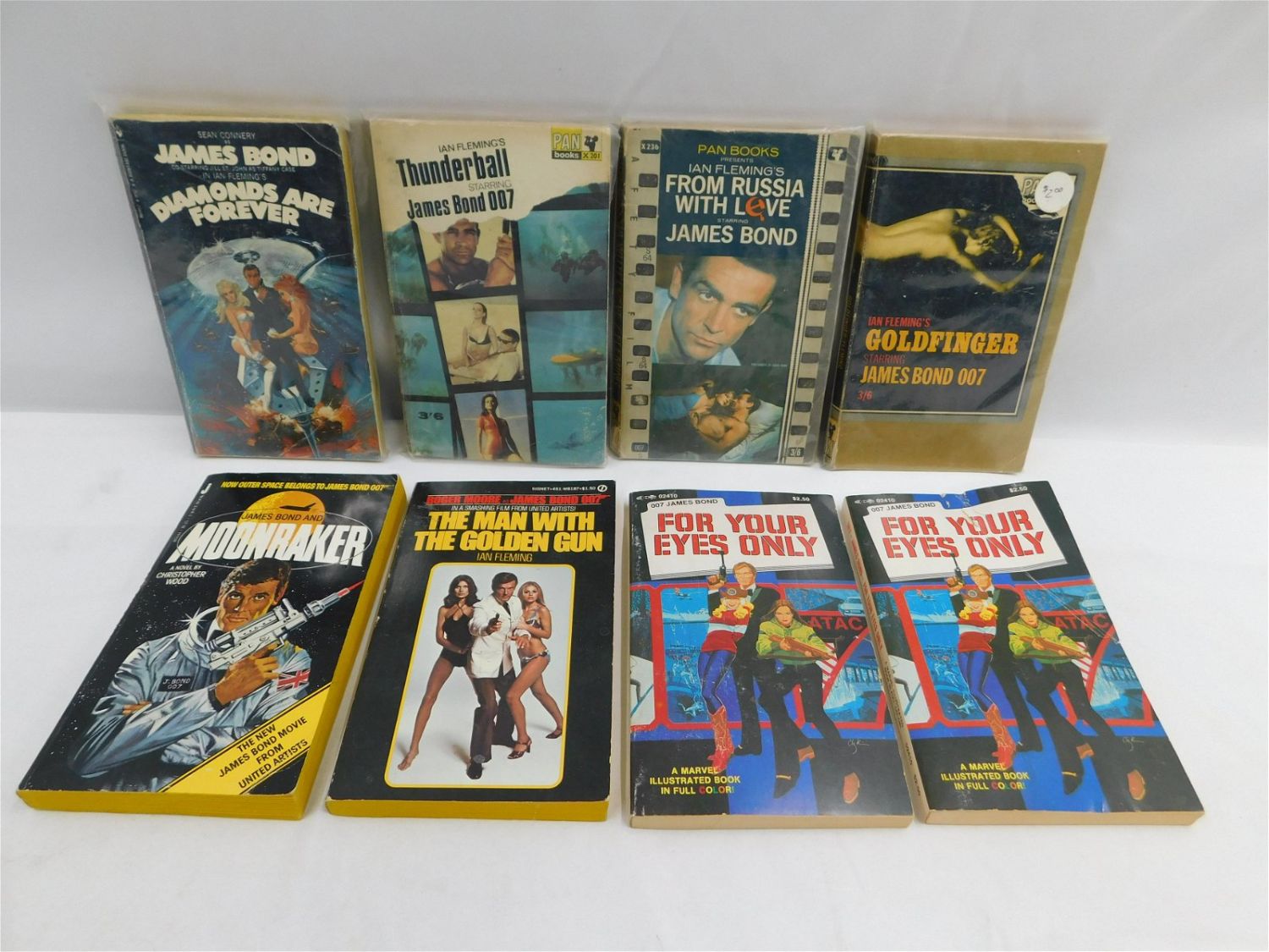Lot of James Bond Paperback Books including Moonraker, The Man with the Golden Gun, (2) For Your Eyes Only, Goldfinger, Diamonds are Forever, Thunderball, and From Russia with Love. All invoices must be paid within 24 hours of the sale. Shipping options are the Liveaship from liveauctionners as seen on the listing, in-house shipping on small lots, and the local UPS Store. Liveship is only one option. Please see shipping terms for all options. Local pickups are at our Monmouth Junction location on Thursday, Friday, Saturday and Monday ONLY! All pickups are by appointment only. Any condition issues will be listed in the description. Please read the terms for full information.