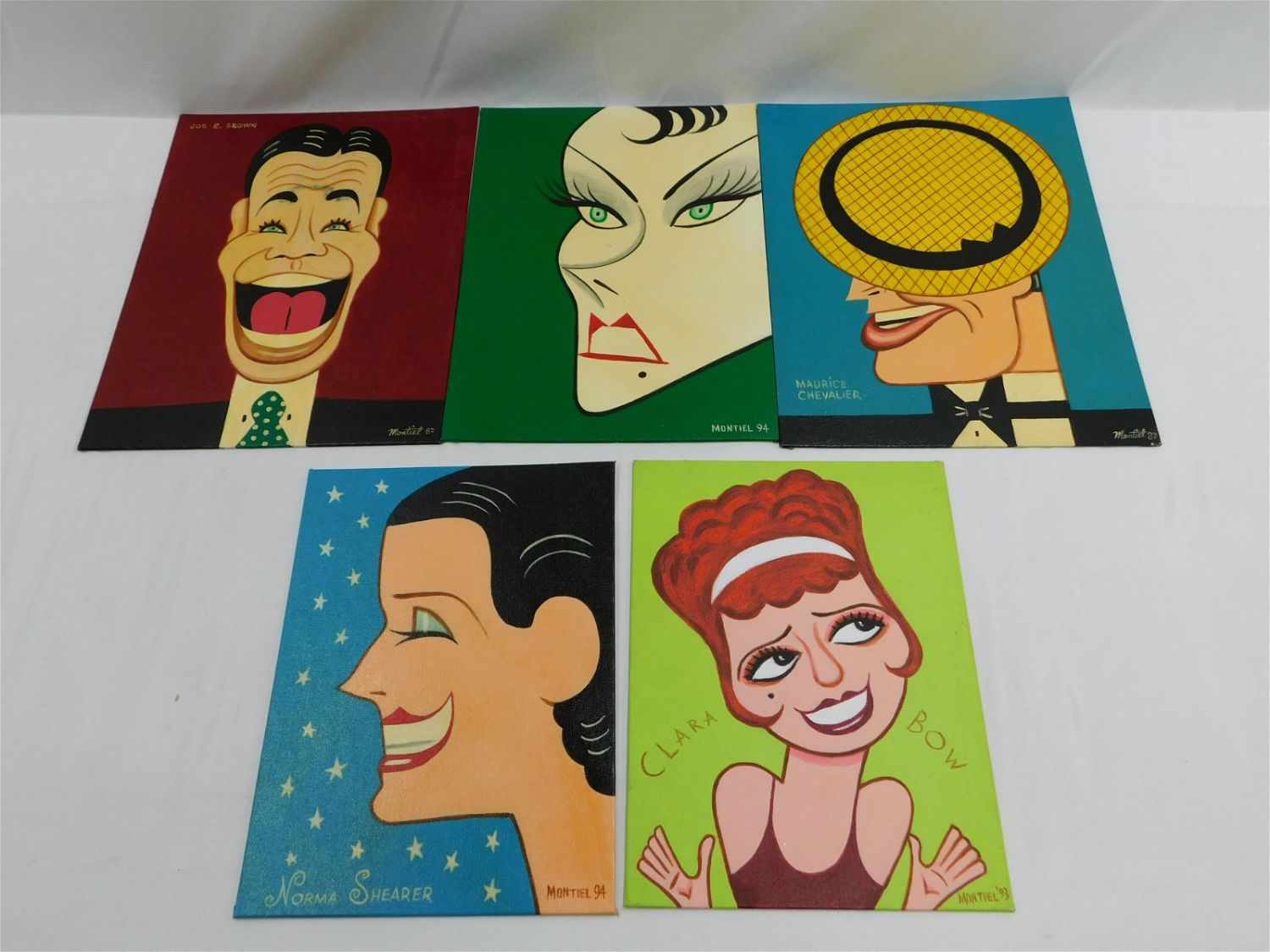 Lot of 5 Movie Star Caricature Paintings Signed by Artist H. Pierre Montiel. Dated 1980’s and 1990’s. Includes Maurice Chevalier, Norma Shearer, Clara Bow, Gloria Swanson, and Joe E. Brown. Largest measures 14" x 11". All invoices must be paid within 24 hours of the sale. Shipping options are the Liveaship from liveauctionners as seen on the listing, in-house shipping on small lots, and the local UPS Store. Liveship is only one option. Please see shipping terms for all options. Local pickups are at our Monmouth Junction location on Thursday, Friday, Saturday and Monday ONLY! All pickups are by appointment only. Any condition issues will be listed in the description. Please read the terms for full information.