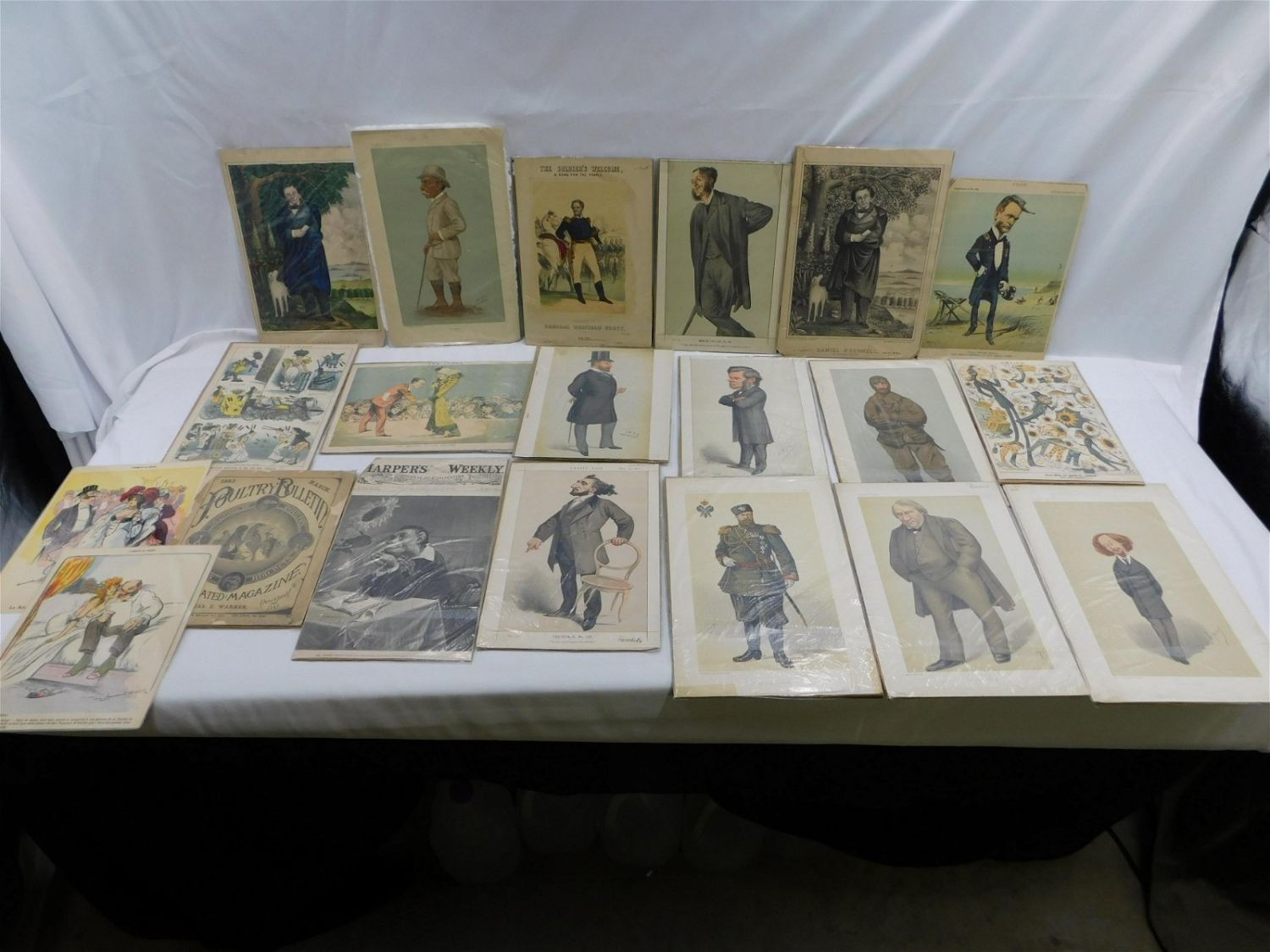 Large Lot of Vintage Cut Outs including Art and Advertisements from Vanity Fair, Foreign Magazines, Spy, Harper’s Weekly, and More. All invoices must be paid within 24 hours of the sale. Shipping options are the Liveaship from liveauctionners as seen on the listing, in-house shipping on small lots, and the local UPS Store. Liveship is only one option. Please see shipping terms for all options. Local pickups are at our Monmouth Junction location on Thursday, Friday, Saturday and Monday ONLY! All pickups are by appointment only. Any condition issues will be listed in the description. Please read the terms for full information.