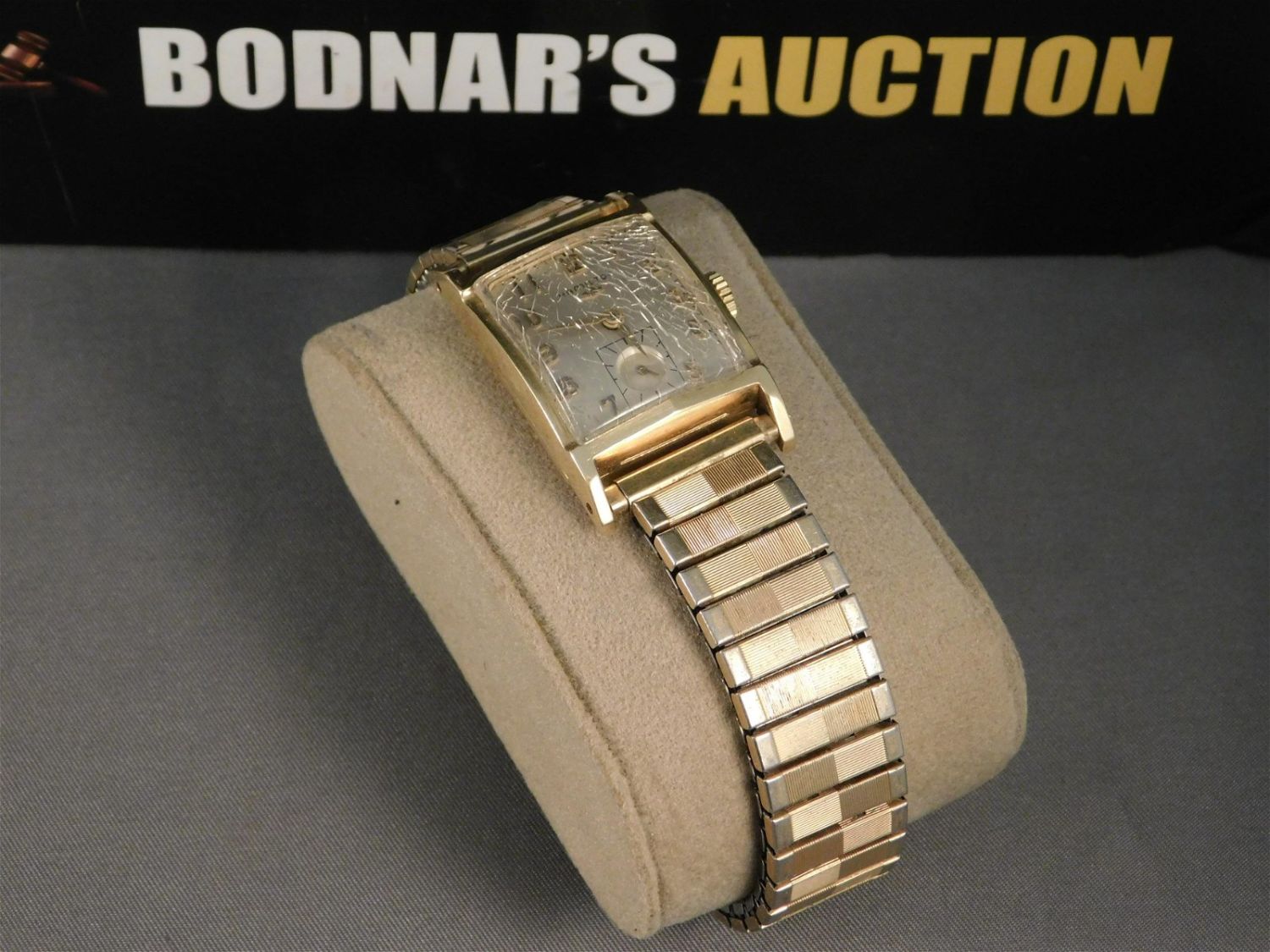 Men’s 14K Hamilton watch. Has a 14K bezel and case back with a gold tone stretch band. The crystal has cracking throughout. Is in running condition. Measures approx. 4" across and 7 1/2" from the inside of the band. All invoices must be paid within 24 hours of the sale. All items are shipped USPS or UPS and will be billed separately. A $12 handling fee is added to the shipping price per lot if shipped in house. Some items or large quantity of purchases will be packed and shipped via the UPS store. Local pickups are at our South Brunswick location on Friday, Saturday and Monday ONLY! All pickups are by appointment only. Any condition issues will be listed in the description. Please read the terms for full information.