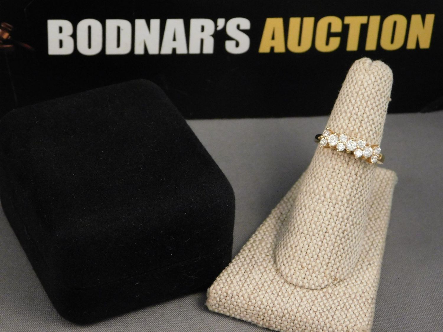 14K yellow gold ladies ring by Diamonique. Has many round and square cut Diamonique cz stones on the front. Has the original box. Size 6. Is marked. All items must be paid for within 24 hours of the sale. All items are shipped USPS or UPS and will be billed separately. A $12 handling fee is added to the shipping price per lot if shipped in house. Some items or large quantity of purchases will be packed and shipped via the UPS store. Local pickups are at our South Brunswick location on Friday, Saturday and Monday ONLY! All pickups are by appointment only. Any condition issues will be listed in the description. Please read the terms for full information.