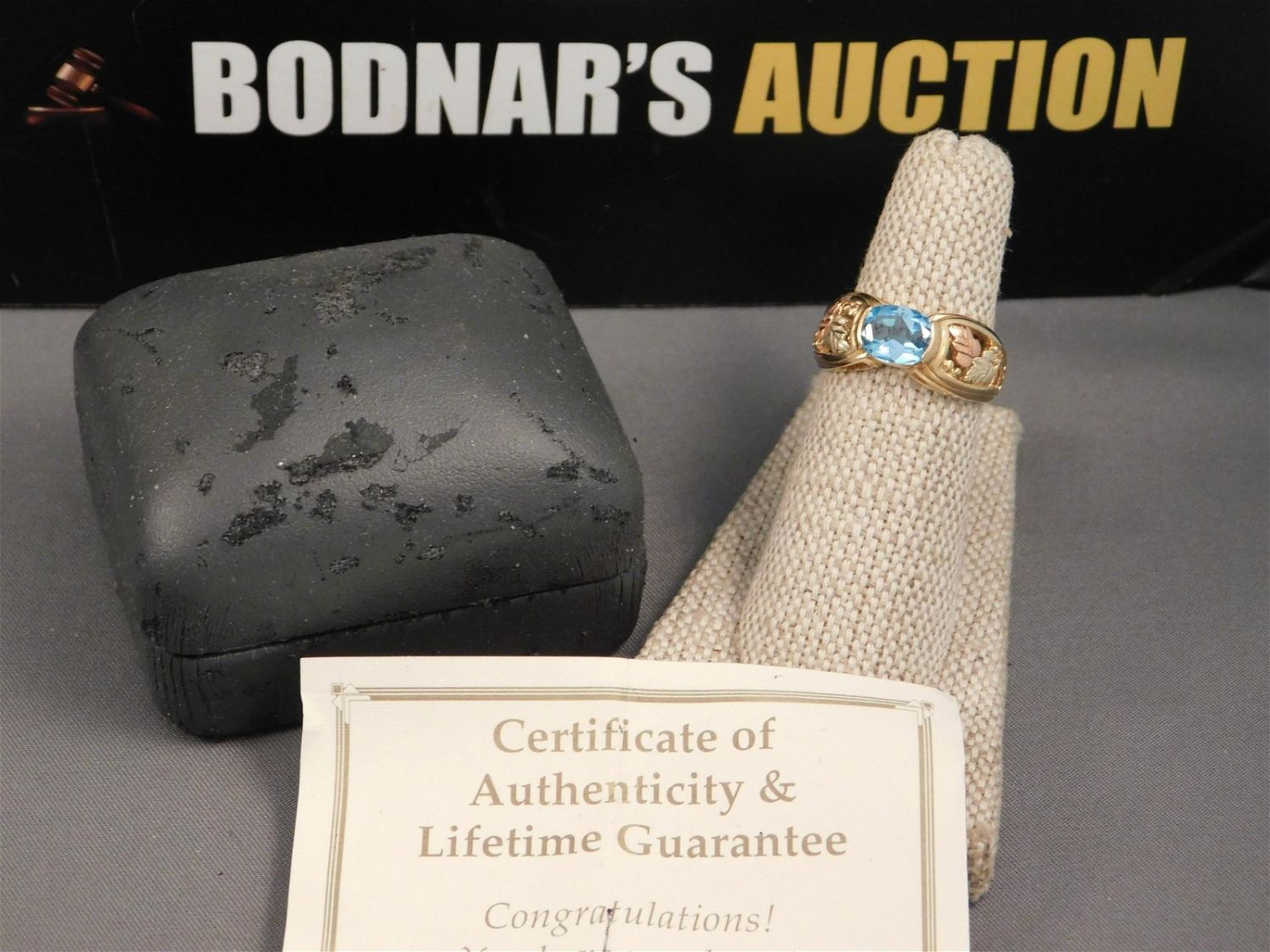 10K yellow gold ladies ring with an oval shaped blue center stone (possibly aquamarine). Has rose and yellow gold leaves along the band. Has original box and paperwork although box has some issues. Size 6 1/4. Is marked. All items must be paid for within 24 hours of the sale. All items are shipped USPS or UPS and will be billed separately. A $12 handling fee is added to the shipping price per lot if shipped in house. Some items or large quantity of purchases will be packed and shipped via the UPS store. Local pickups are at our South Brunswick location on Friday, Saturday and Monday ONLY! All pickups are by appointment only. Any condition issues will be listed in the description. Please read the terms for full information.