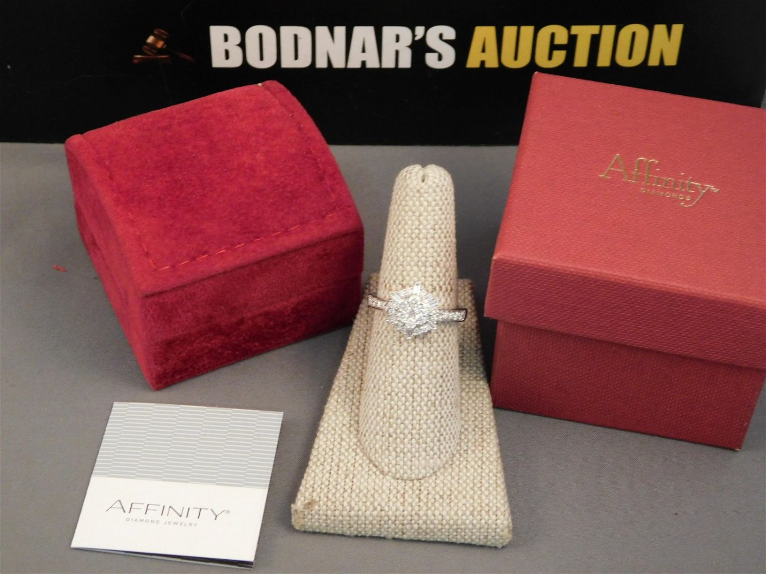 Affinity Diamonds 14K White Gold Ladies Ring with Round and Baguette Cut Diamonds in Snowflake Pattern on Front. Comes with Box, outer box and paperwork. Size 7.25. All items must be paid for within 24 hours of the sale. All items are shipped USPS or UPS and will be billed separately. A $12 handling fee is added to the shipping price per lot if shipped in house. Some items or large quantity of purchases will be packed and shipped via the UPS store. Local pickups are at our South Brunswick location on Friday, Saturday and Monday ONLY! All pickups are by appointment only. Any condition issues will be listed in the description. Please read the terms for full information.