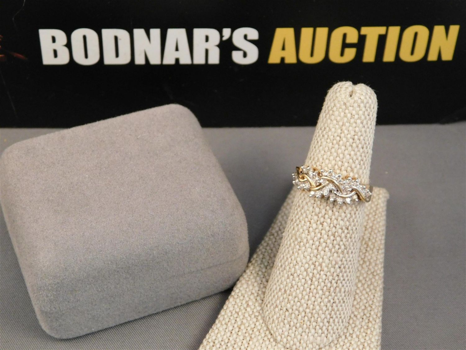 14K Yellow Gold Ladies Ring with Round Cut Diamonds in a vine style pattern on the front. Comes in box. Size 6. All items must be paid for within 24 hours of the sale. All items are shipped USPS or UPS and will be billed separately. A $12 handling fee is added to the shipping price per lot if shipped in house. Some items or large quantity of purchases will be packed and shipped via the UPS store. Local pickups are at our South Brunswick location on Friday, Saturday and Monday ONLY! All pickups are by appointment only. Any condition issues will be listed in the description. Please read the terms for full information.