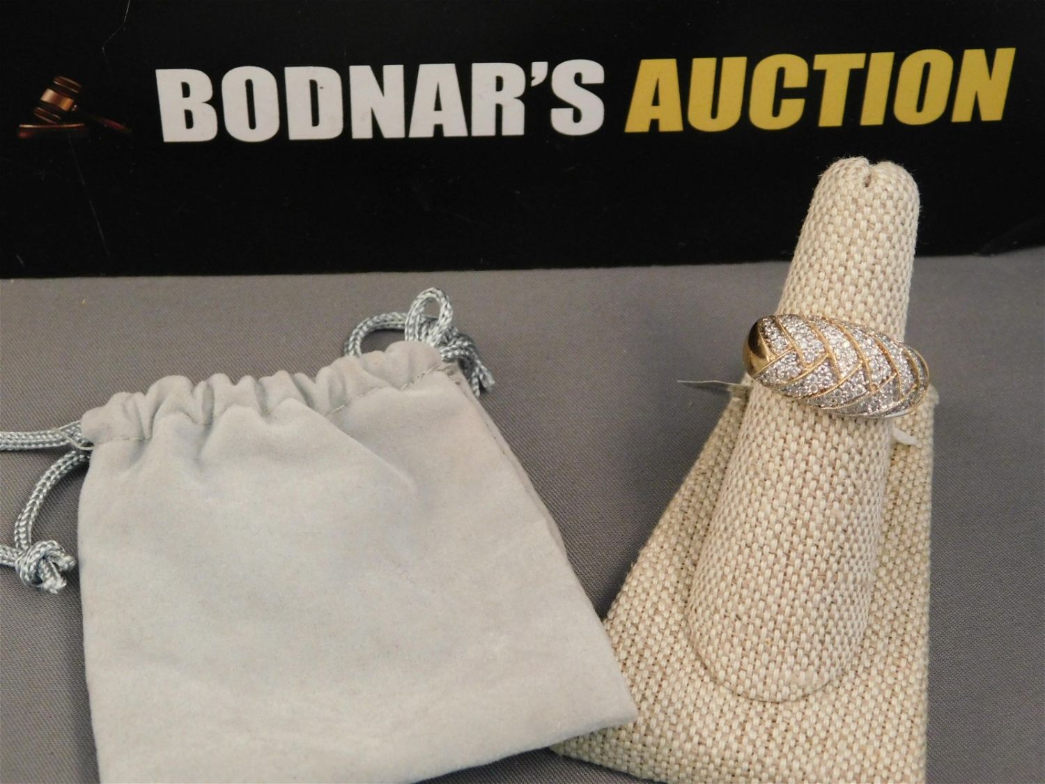 14K Yellow Gold Ladies Dome Ring with Round Cut Diamonds in overlapping weave pattern on the front. Comes in bag and tag. Size 6. All items must be paid for within 24 hours of the sale. All items are shipped USPS or UPS and will be billed separately. A $12 handling fee is added to the shipping price per lot if shipped in house. Some items or large quantity of purchases will be packed and shipped via the UPS store. Local pickups are at our South Brunswick location on Friday, Saturday and Monday ONLY! All pickups are by appointment only. Any condition issues will be listed in the description. Please read the terms for full information.