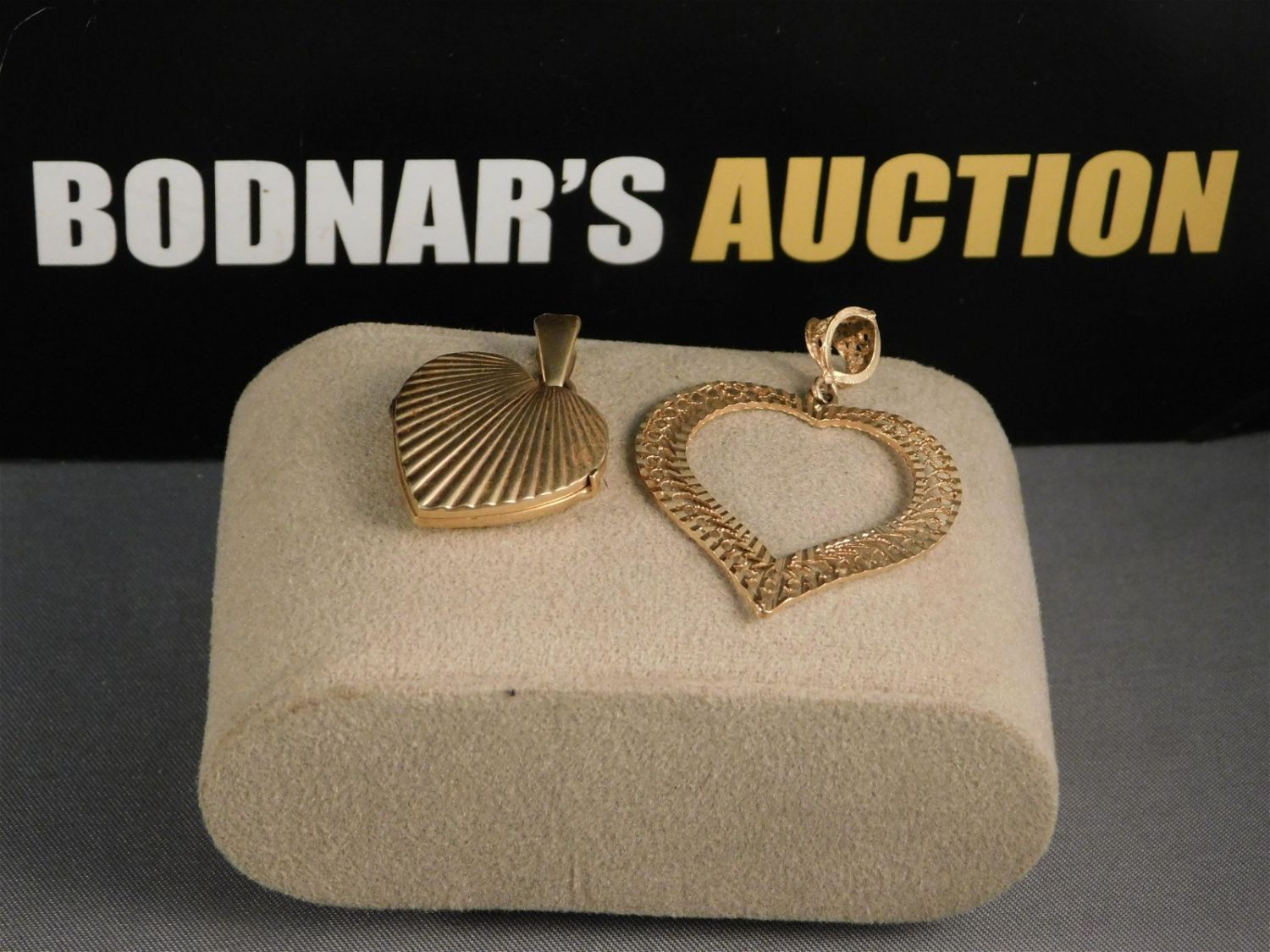 2 14K yellow gold heart pendants including 1 locket that is market and one filagree style pendant that was tested and is not marked. Measures approx. between 1 1/4" – 1 1/2" and weighs approx. 6.3g. All invoices must be paid within 24 hours of the sale. All items are shipped USPS or UPS and will be billed separately. A $12 handling fee is added to the shipping price per lot if shipped in house. Some items or large quantity of purchases will be packed and shipped via the UPS store. Local pickups are at our South Brunswick location on Friday, Saturday and Monday ONLY! All pickups are by appointment only. Any condition issues will be listed in the description. Please read the terms for full information.