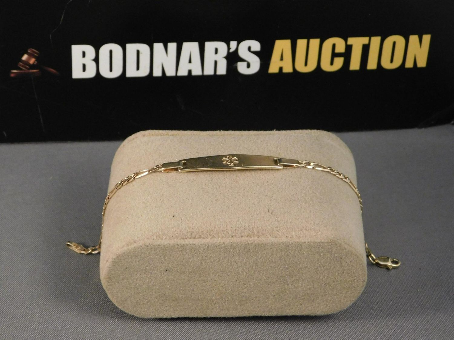 14K yellow gold medical ID bracelet. Marked. Measures approx. 6", weighs approx. 3.2g. All invoices must be paid within 24 hours of the sale. All items are shipped USPS or UPS and will be billed separately. A $12 handling fee is added to the shipping price per lot if shipped in house. Some items or large quantity of purchases will be packed and shipped via the UPS store. Local pickups are at our South Brunswick location on Friday, Saturday and Monday ONLY! All pickups are by appointment only. Any condition issues will be listed in the description. Please read the terms for full information.