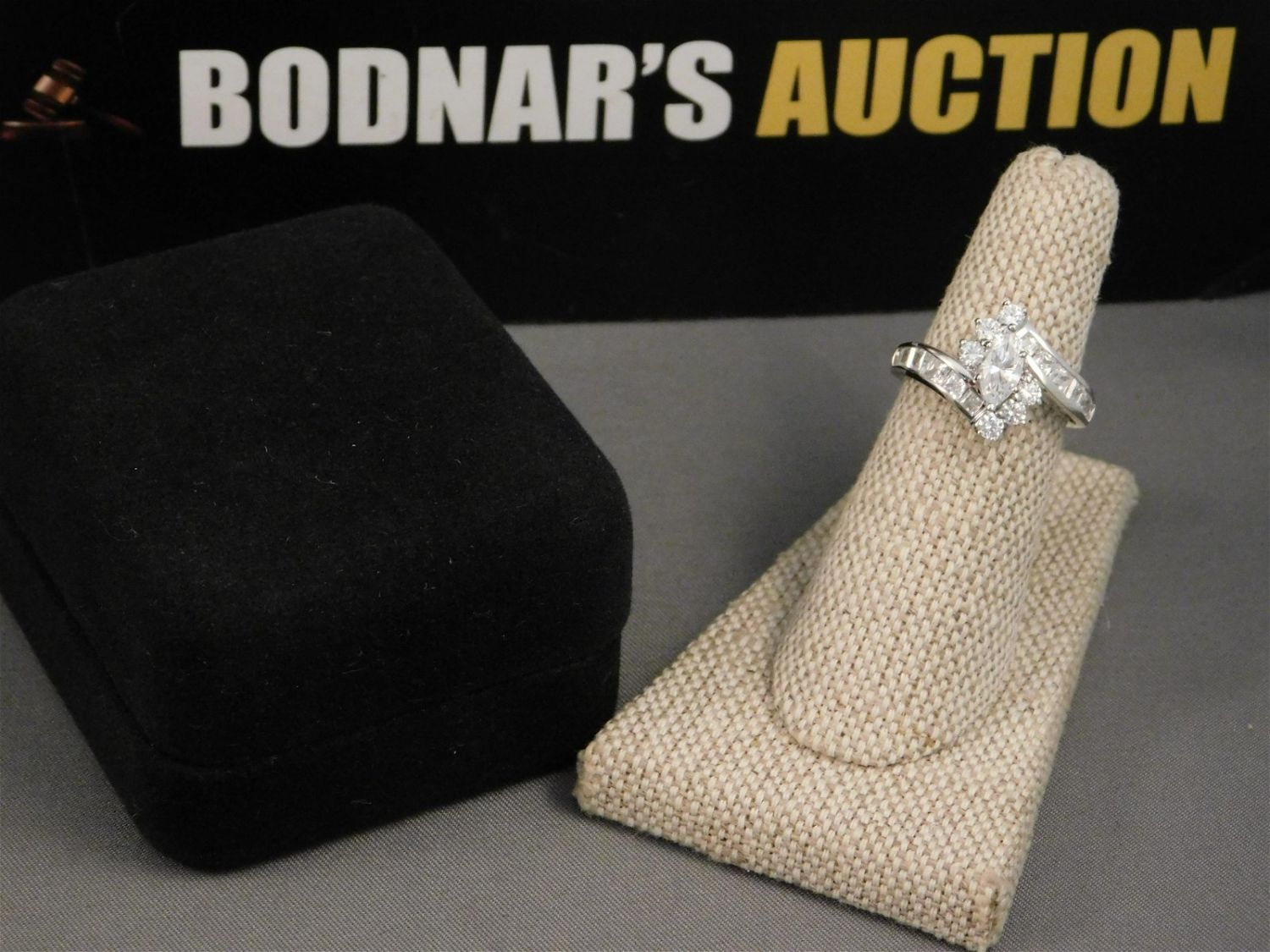 14K white gold ladies ring by Diamonique. Has a marquise cut Diamonique center cz stone and many round and square cut cz stones on the band. Has original box. Size 6 1/4. Is marked. All items must be paid for within 24 hours of the sale. All items are shipped USPS or UPS and will be billed separately. A $12 handling fee is added to the shipping price per lot if shipped in house. Some items or large quantity of purchases will be packed and shipped via the UPS store. Local pickups are at our South Brunswick location on Friday, Saturday and Monday ONLY! All pickups are by appointment only. Any condition issues will be listed in the description. Please read the terms for full information.