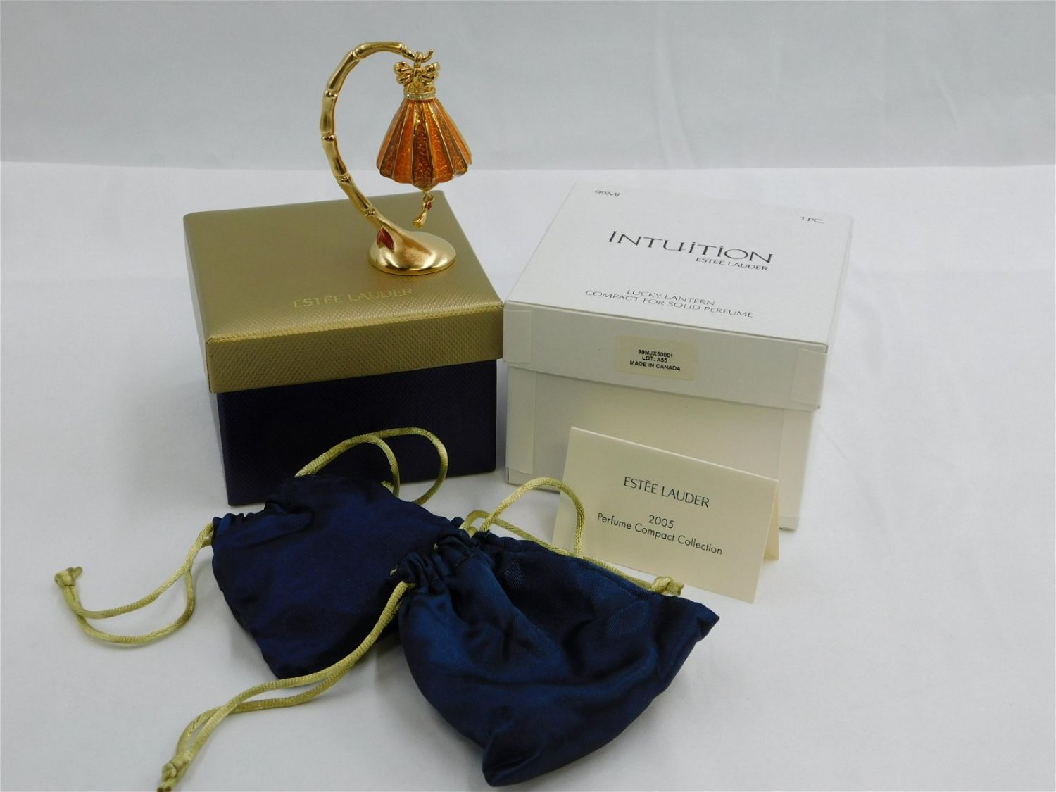 Intuition by Estee Lauder Lucky Lantern Compact for Solid Perfume – Designed for Estee Lauder – 2005. Enamel with Rhinestones. Comes with Stand. Measures 3.5" tall x 2" wide. New in Box. Comes in original box, outer box, bag and paperwork. All invoices must be paid within 24 hours of the sale. All items are shipped USPS or UPS and will be billed separately. A $12 handling fee is added to the shipping price per lot if shipped in house. Some items or large quantity of purchases will be packed and shipped via the Monmouth Junction UPS store. Local pickups are at our Monmouth Junction location on Friday, Saturday and Monday ONLY! All pickups are by appointment only. Any condition issues will be listed in the description. Please read the terms for full information.
