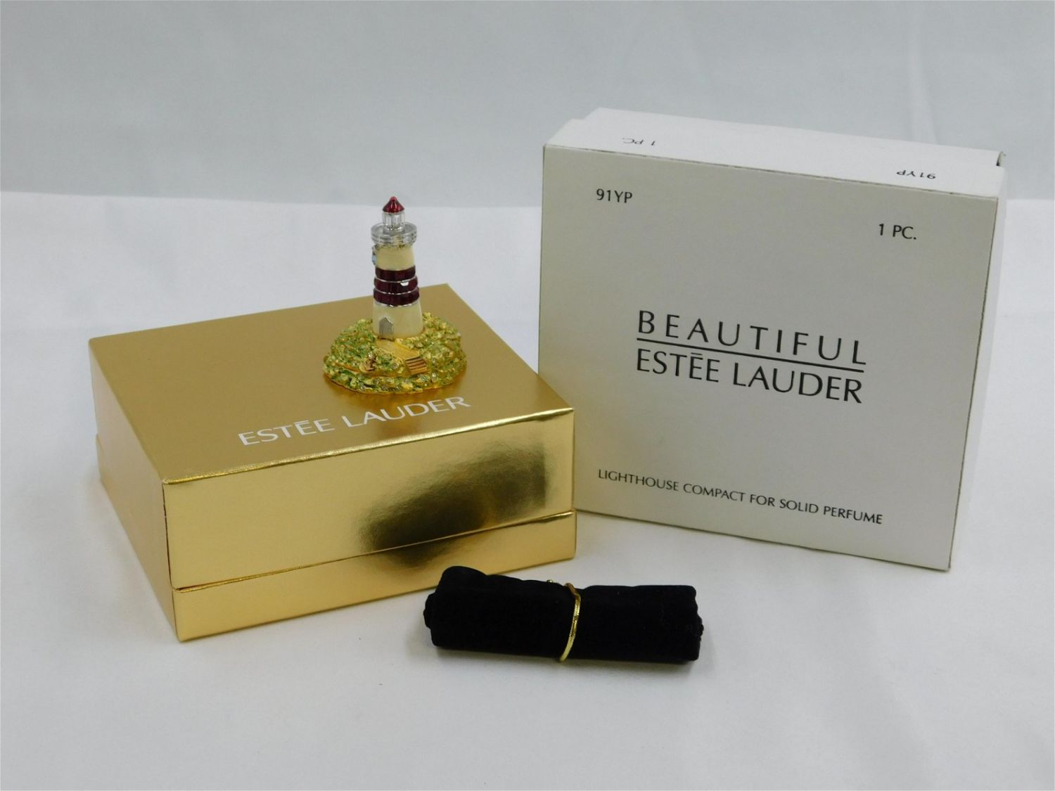 Beautiful by Estee Lauder Lighthouse Compact for Solid Perfume – Designed for Estee Lauder – 2004. Enamel with Rhinestones. Measures 2" tall x 2" wide. New in Box. Comes in original box, outer box, and bag. All invoices must be paid within 24 hours of the sale. All items are shipped USPS or UPS and will be billed separately. A $12 handling fee is added to the shipping price per lot if shipped in house. Some items or large quantity of purchases will be packed and shipped via the Monmouth Junction UPS store. Local pickups are at our Monmouth Junction location on Friday, Saturday and Monday ONLY! All pickups are by appointment only. Any condition issues will be listed in the description. Please read the terms for full information.